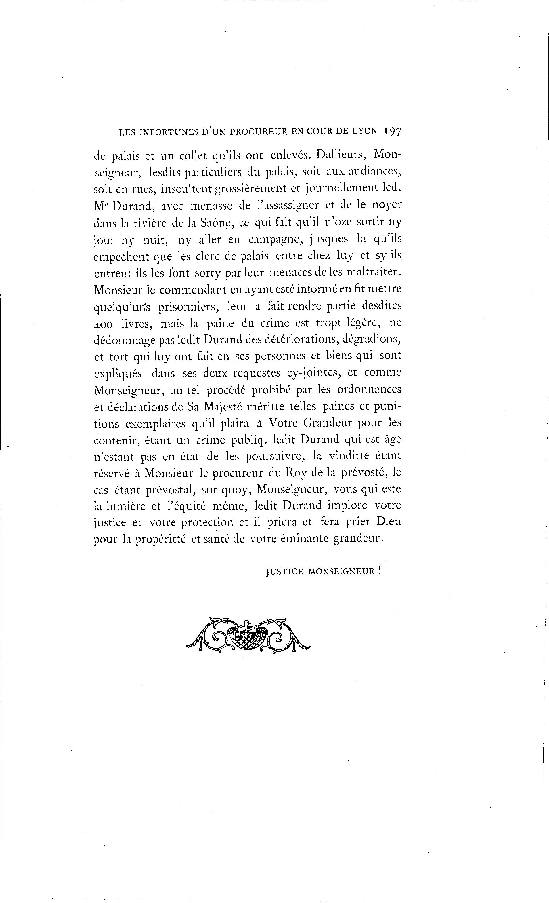 LES INFORTUNES D ' U N PROCUREUR EN COUR DE LYON 1 9 7