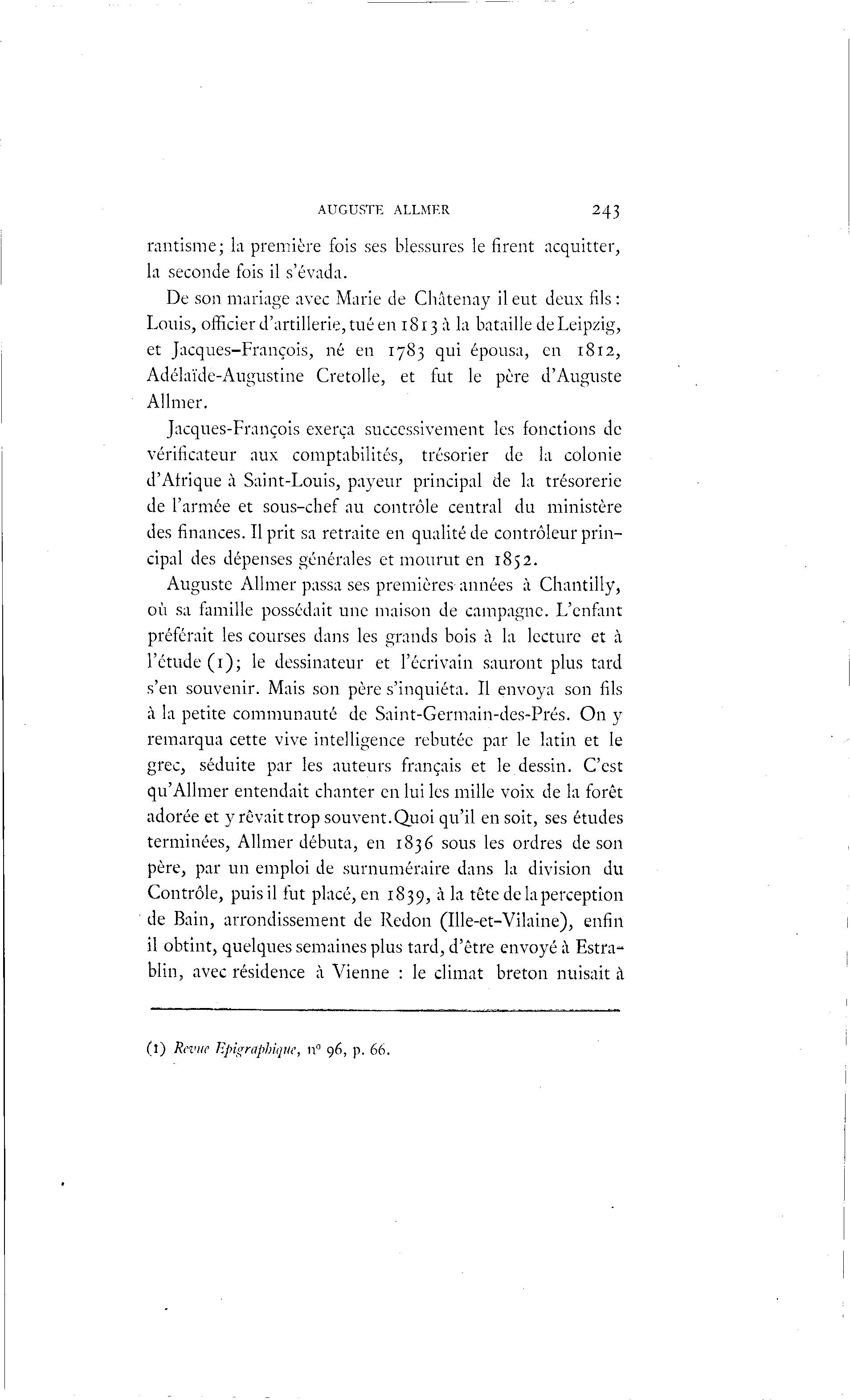 terminées, Allmer débuta, en 1836 sous les ordres de son