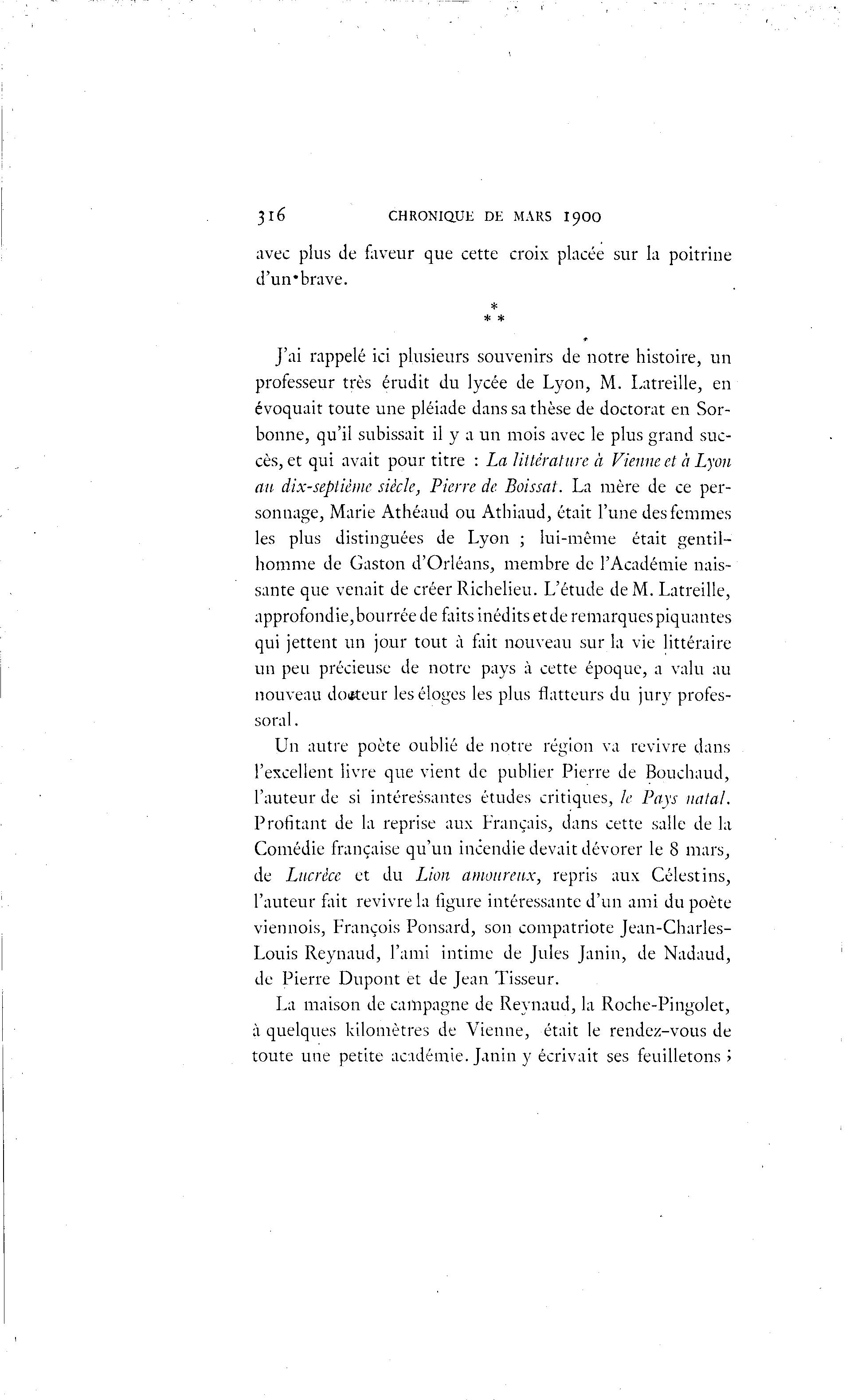 cès, et qui avait pour titre : La littérature à Vienne et à Lyon