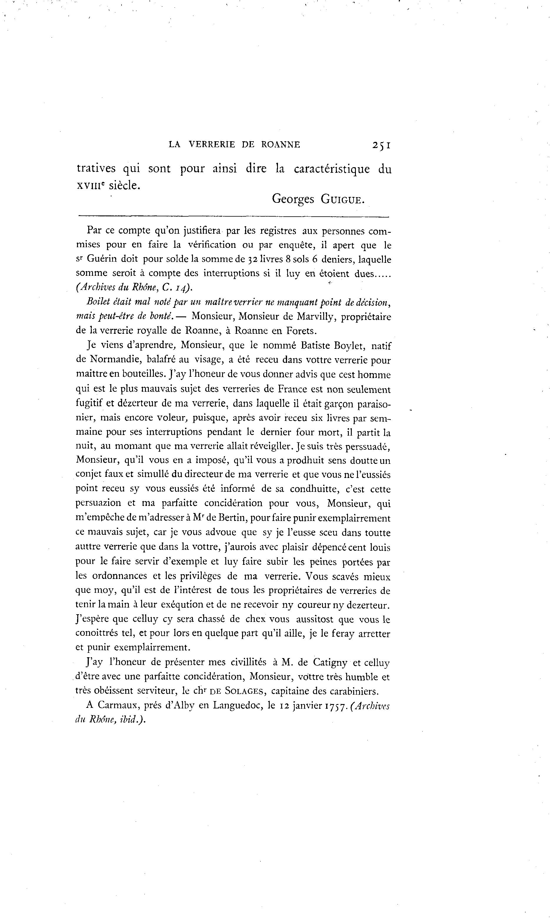 de la verrerie royalle de Roanne, Ã Roanne en Forets.