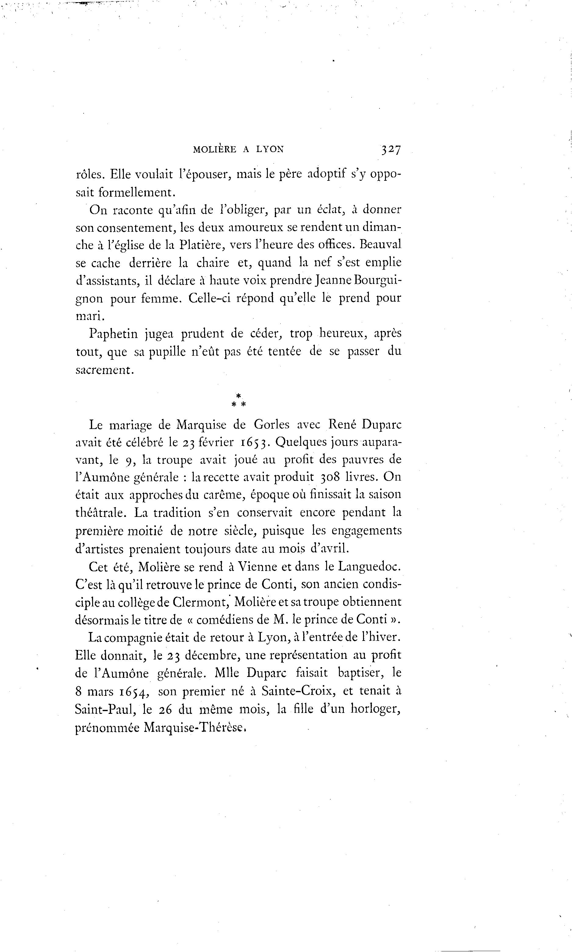 ciple au collège de Clermont, Molière et sa troupe obtiennent