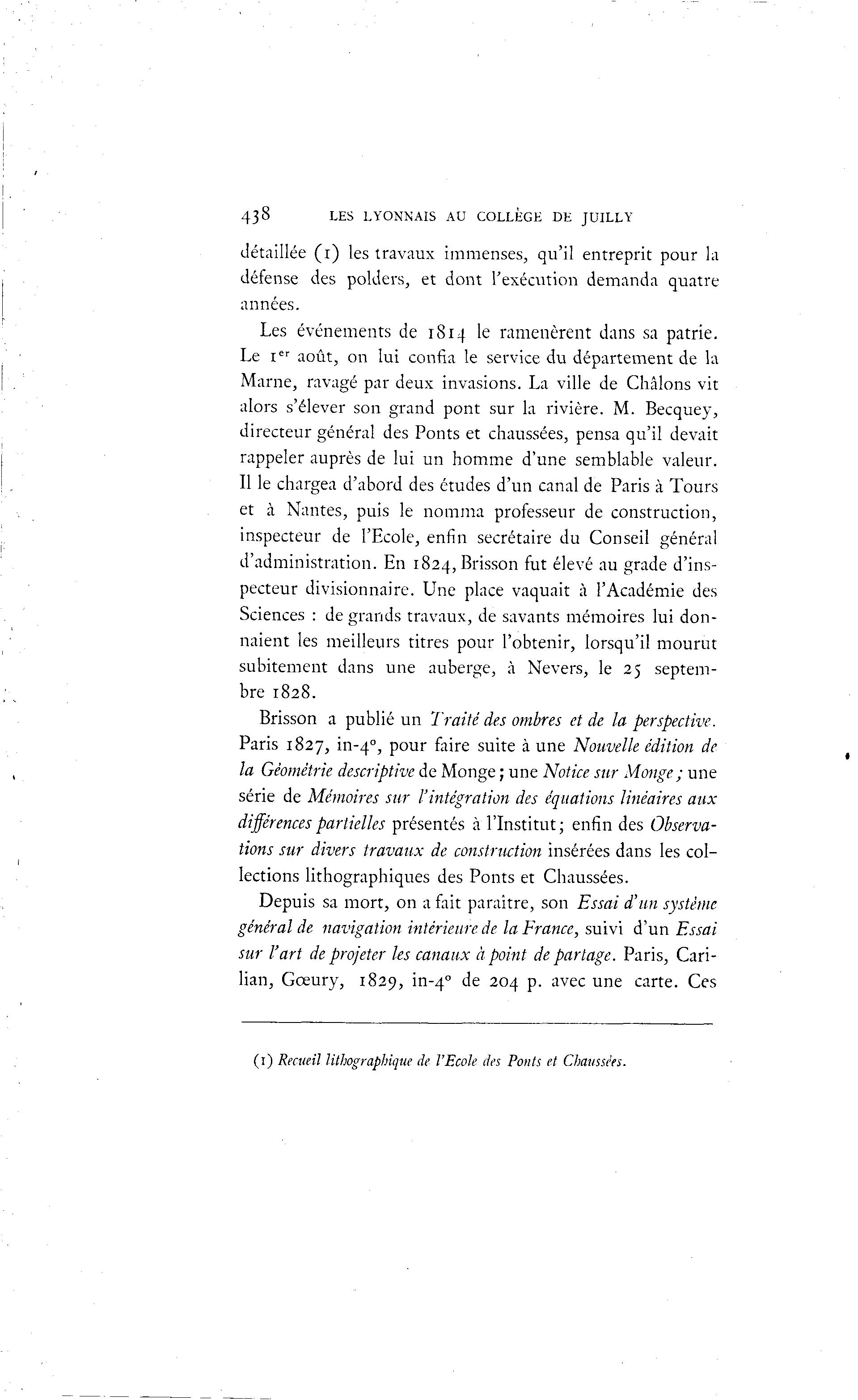 (1) Recueit lithographique de l'Ecole des Ponts et Chaussées.