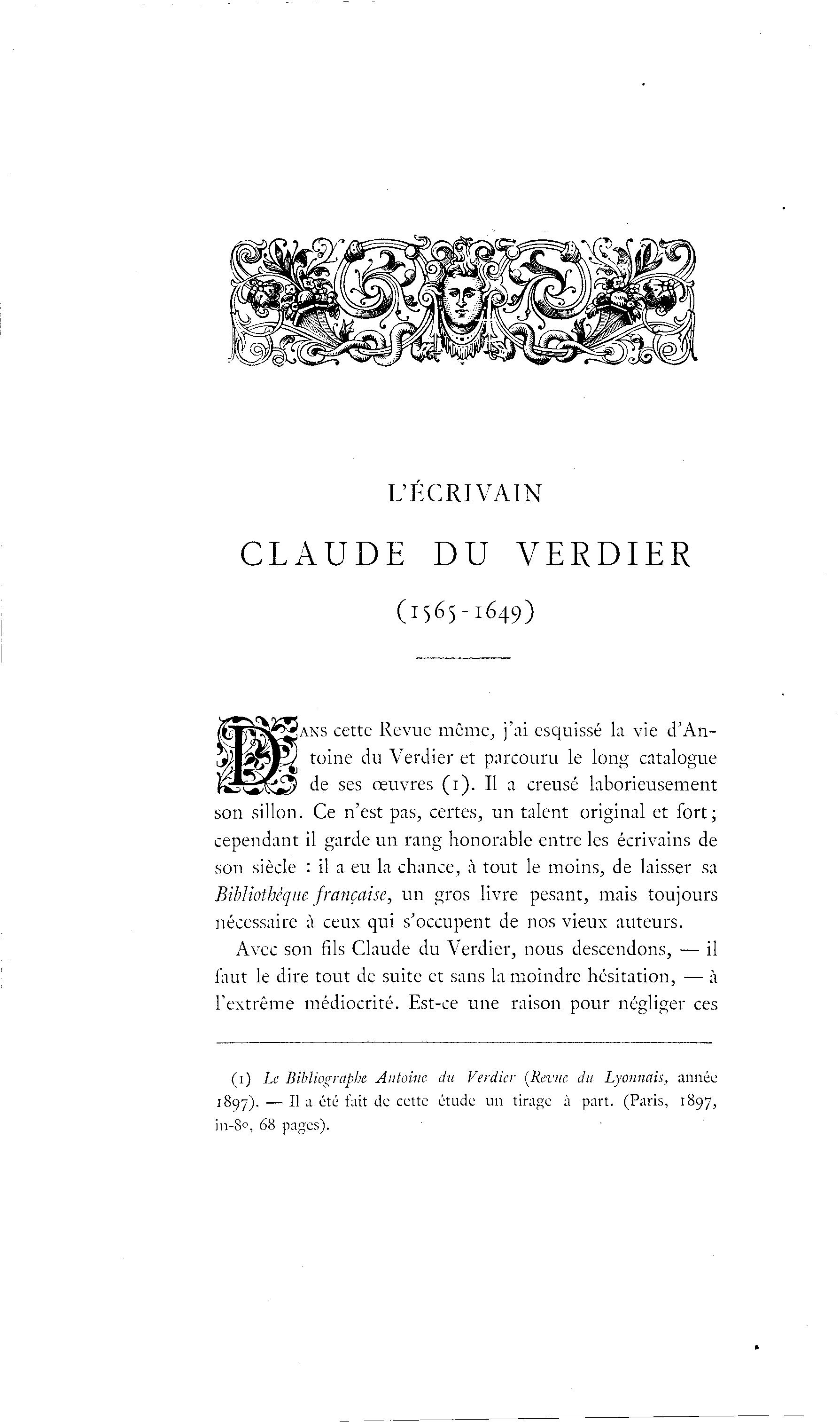 (1) Le Bibliographe Antoine du Verdier [Revue du Lyonnais, année