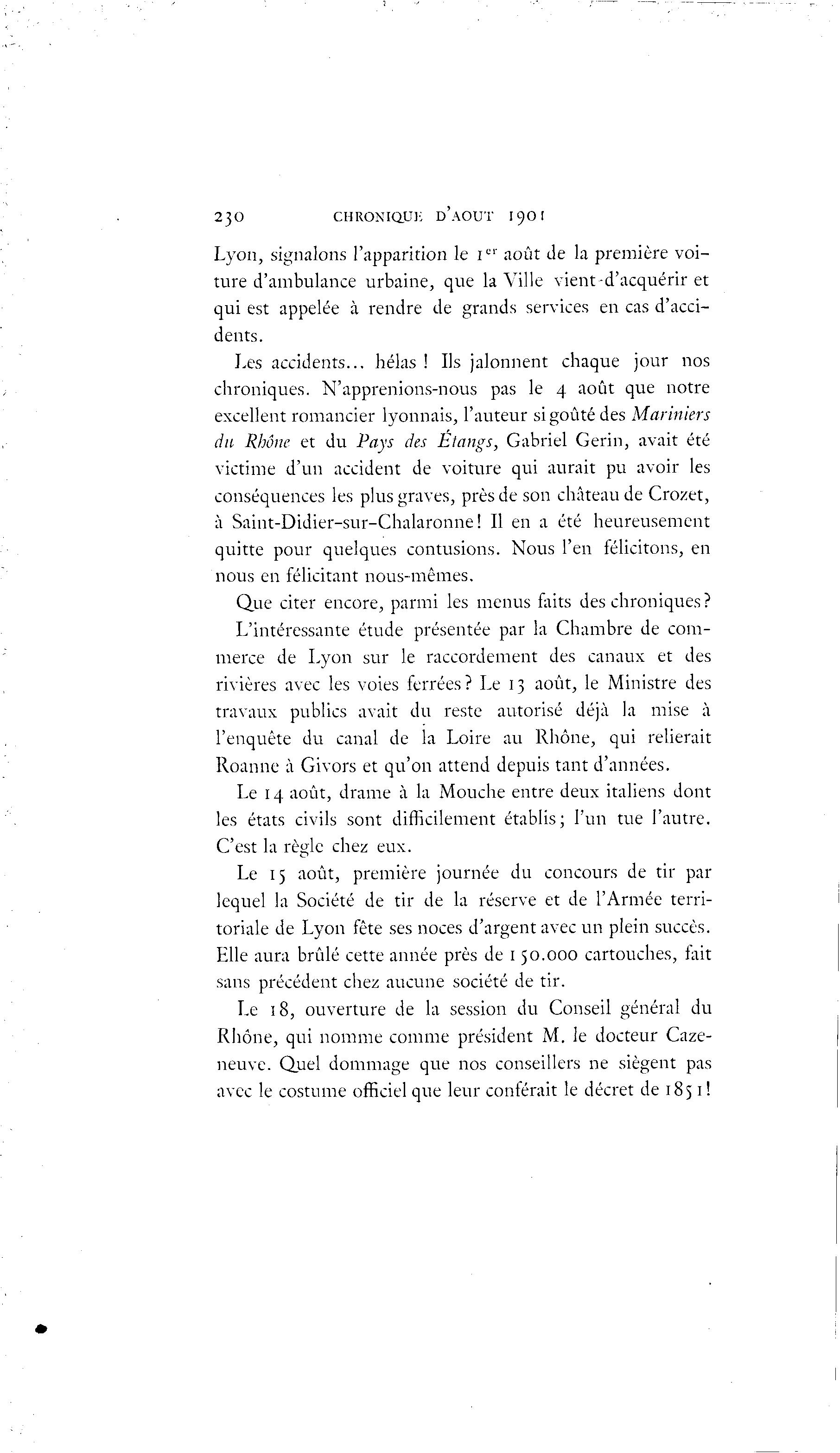 du Rhône et du Pays des Etangs, Gabriel Gerin, avait été