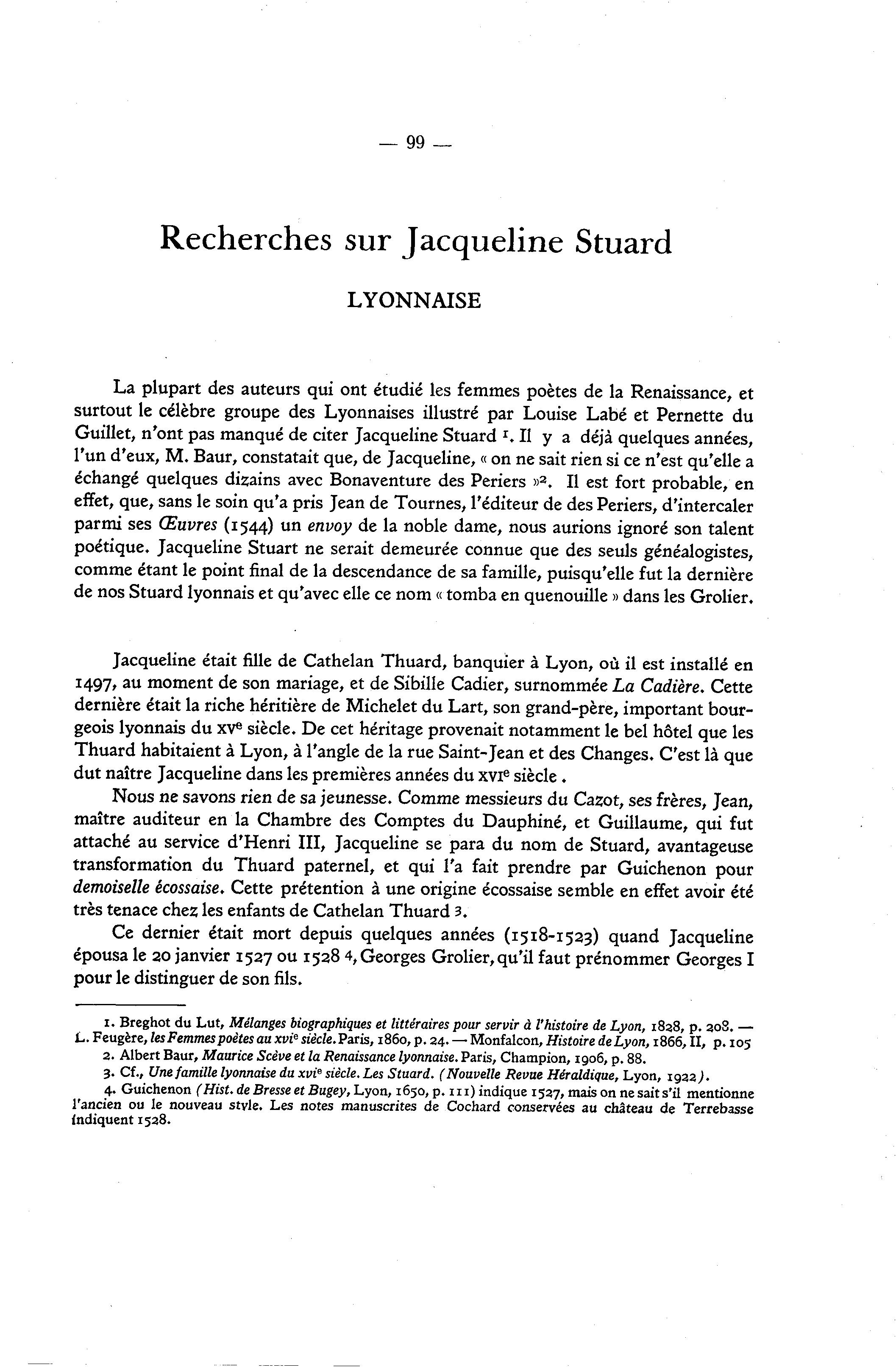 3. Cf., Une famille lyonnaise du xvie siècle. Les Stuard. (Nouvelle Revue Héraldique, Lyon, 1933^.