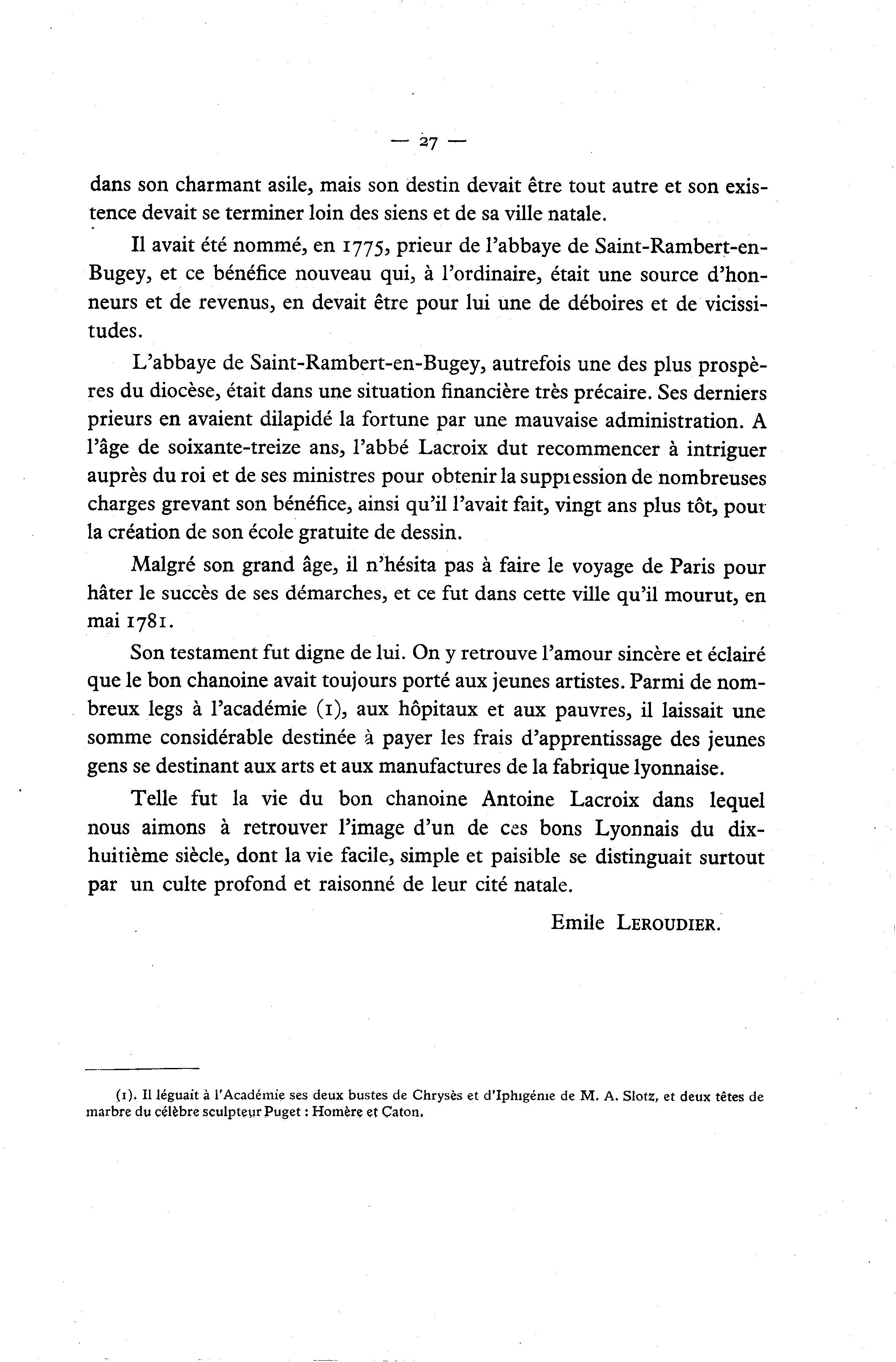 Il avait été nommé, en 1775, prieur de l'abbaye de Saint-Rambert-en-