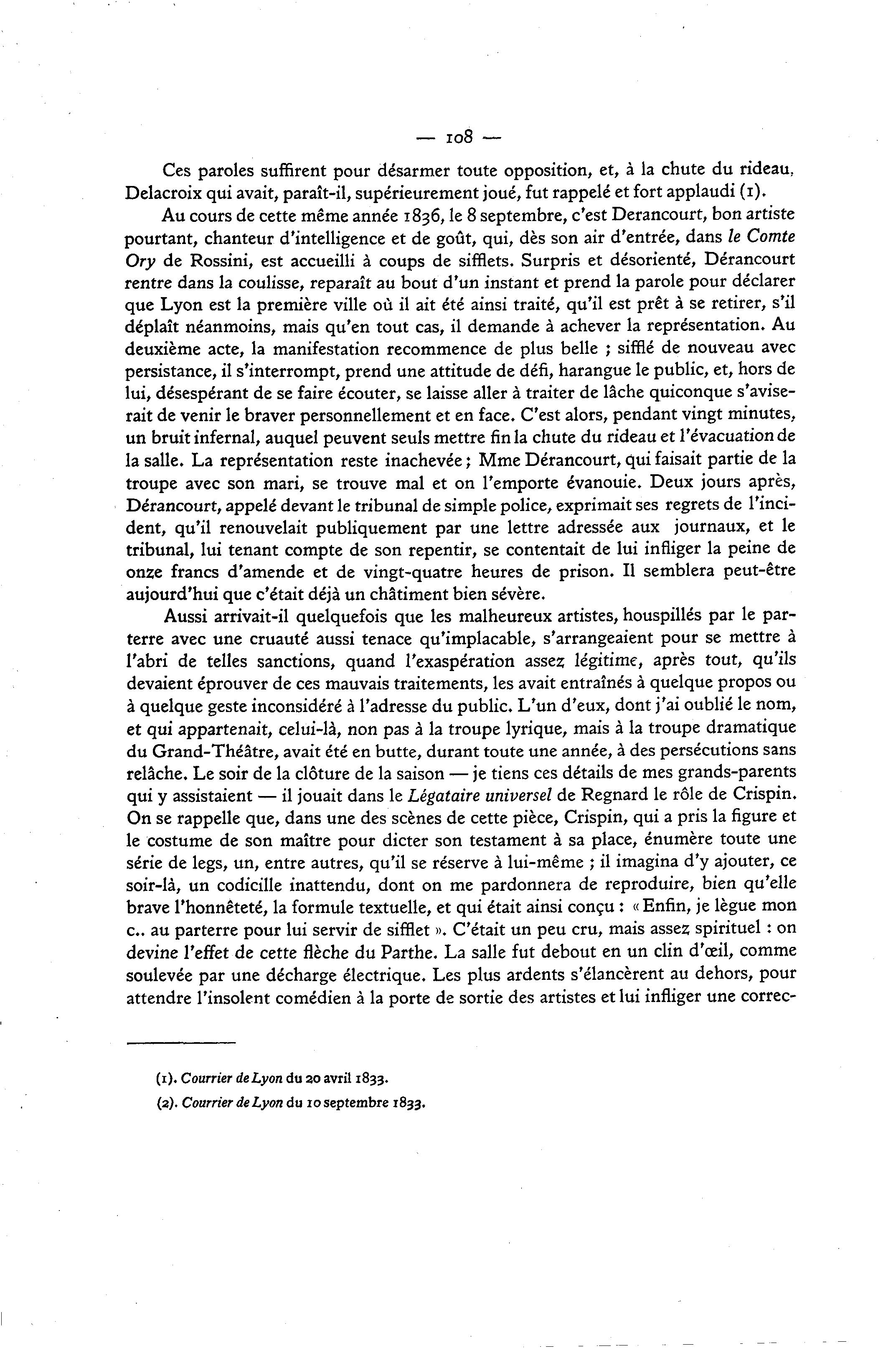 (2). Courrier de Lyon du 10 septembre 1833.
