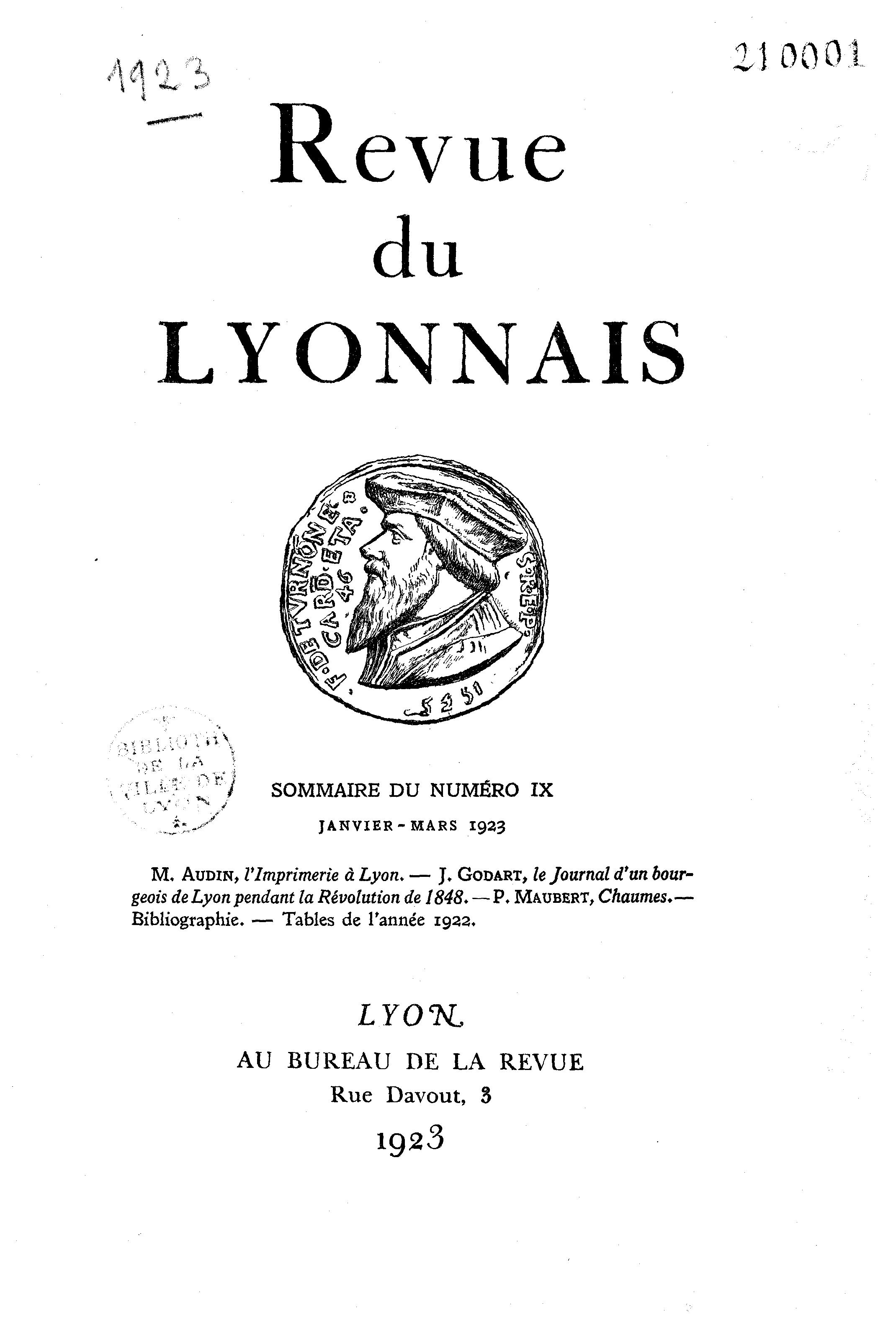 M. AUDIN, l'Imprimerie à Lyon. — J. GODART, le Journal d'un bour-