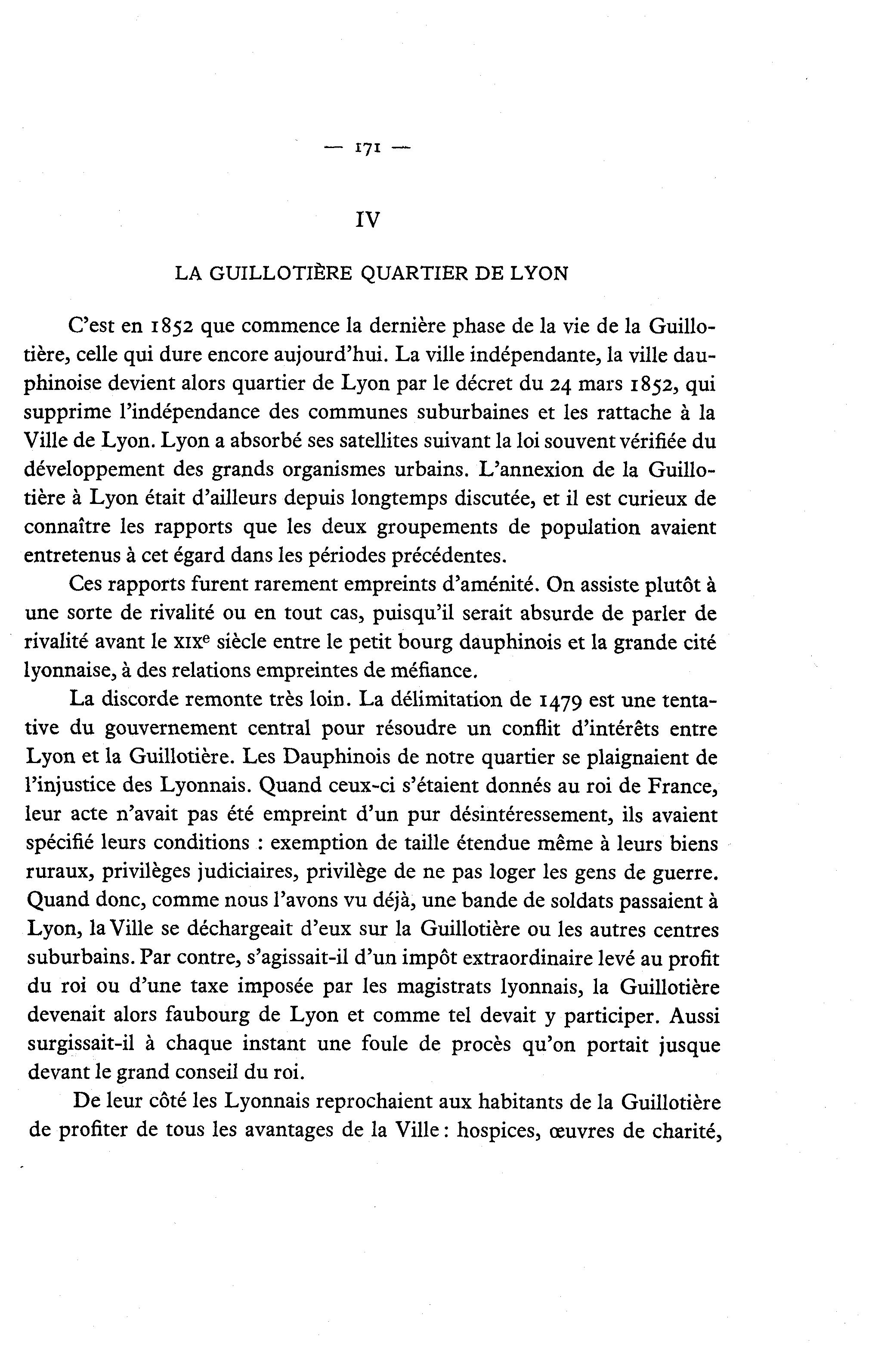 du roi ou d'une taxe imposée par les magistrats lyonnais, la Guillotière