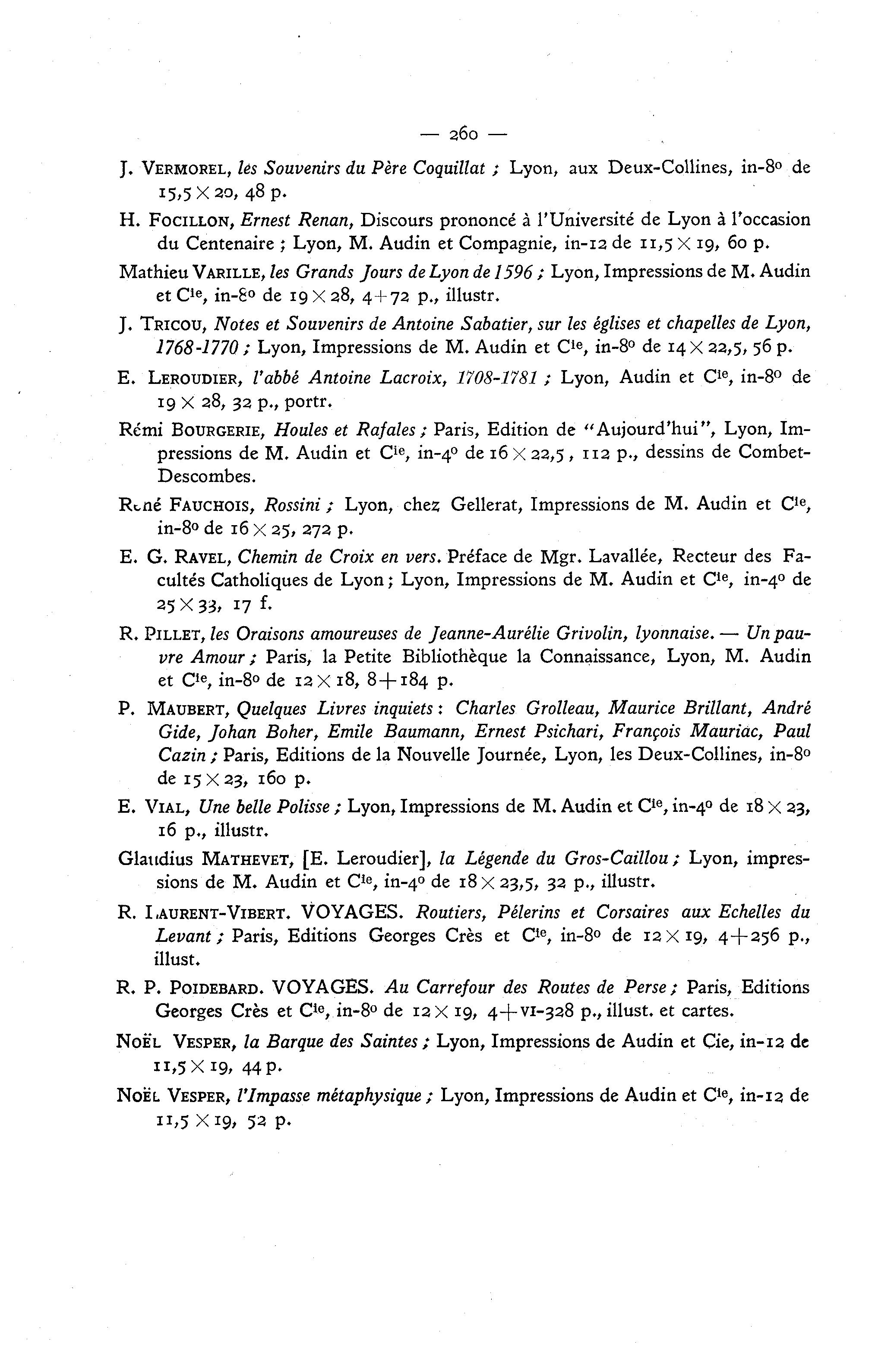 1768-1770 ; Lyon, Impressions de M. Audin et C le , in-8° de 14 X 22,5, 56 p.