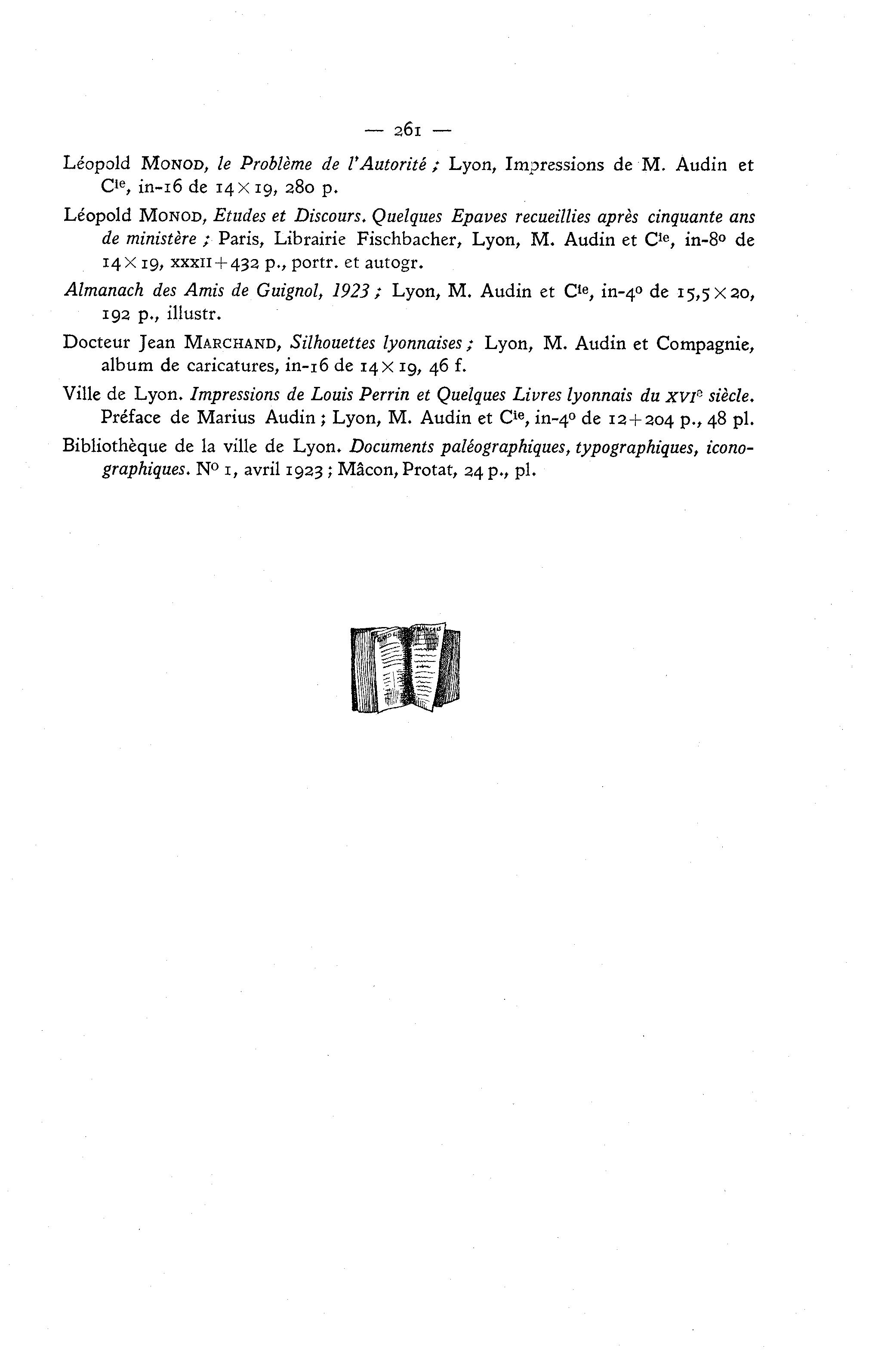 Préface de Marius Audin ; Lyon, M. Audin et O , in-4 0 de 12+204 p., 48 pi.