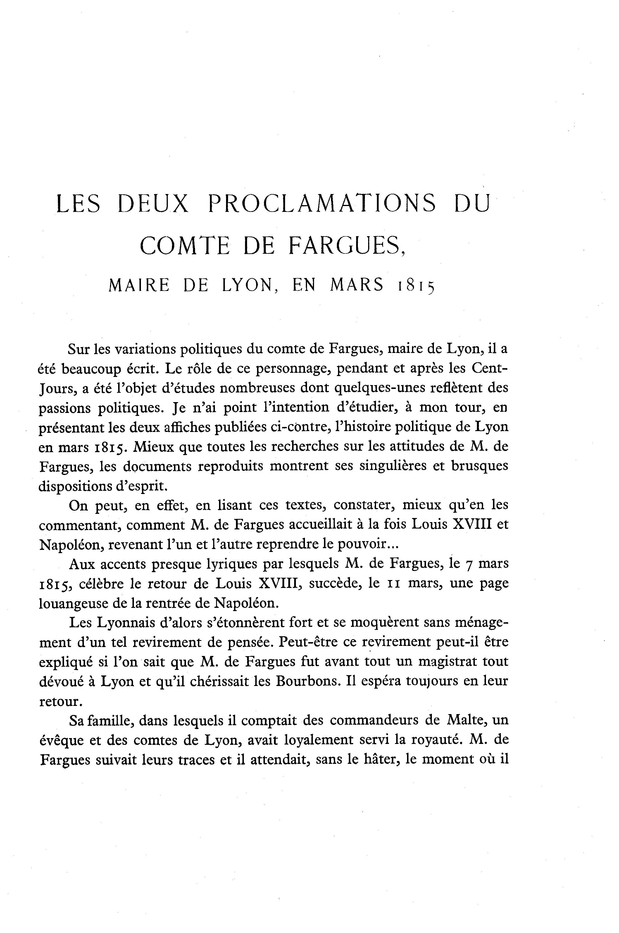 Sur les variations politiques du comte de Fargues, maire de Lyon, il a