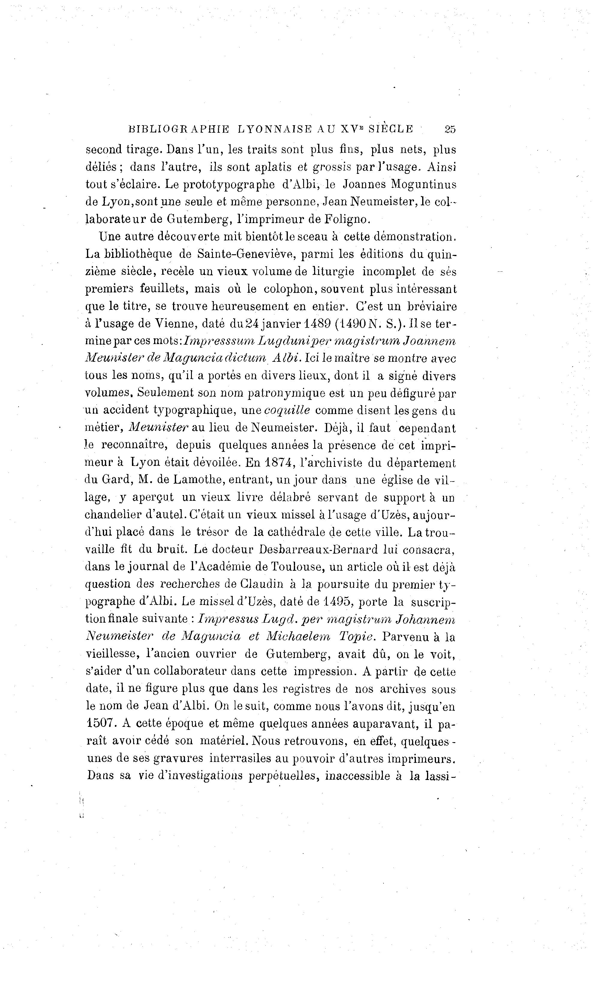 mine par ces mots:Impresssum Lugduniper magistrum Joannem