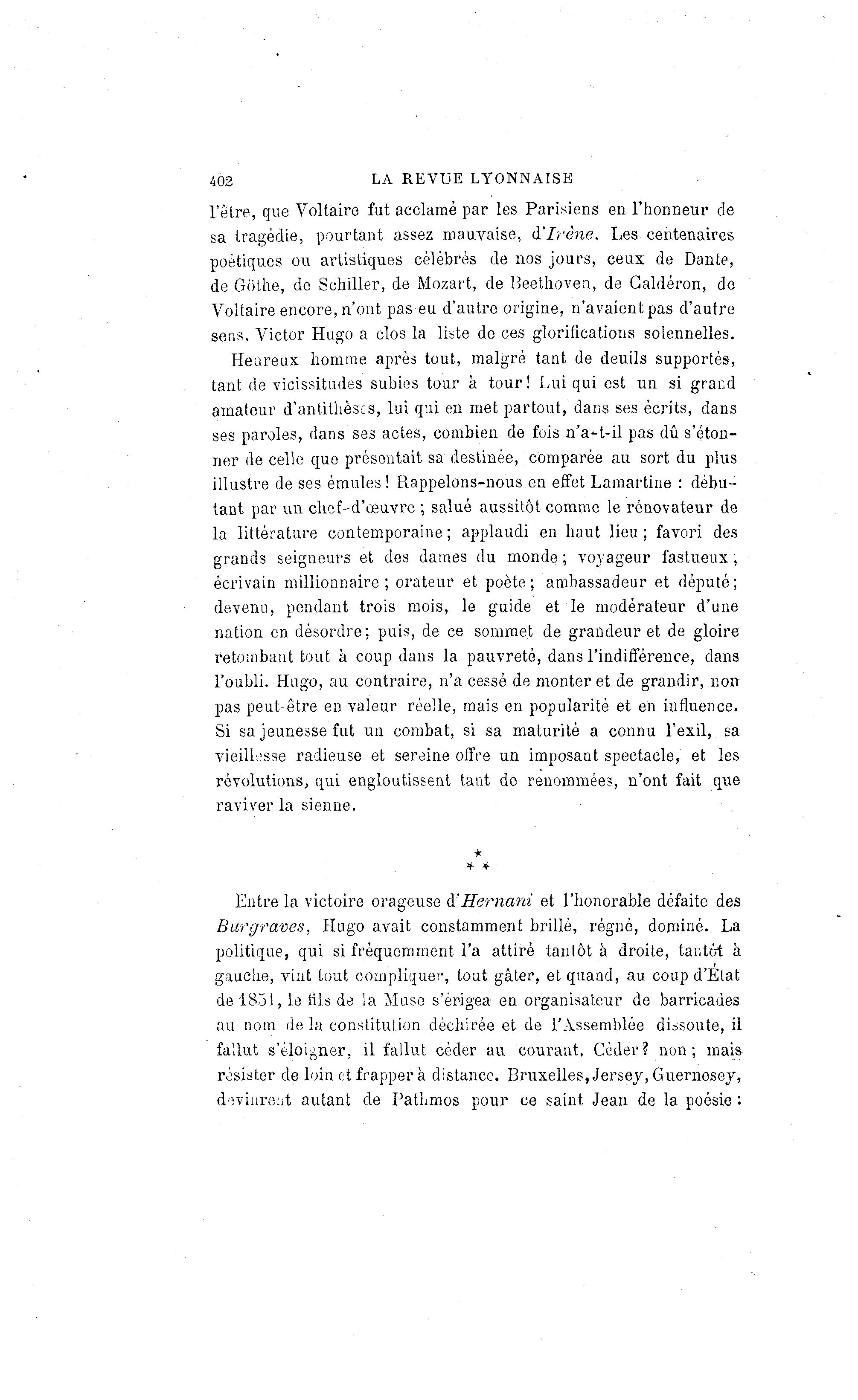 l'oubli. Hugo, au contraire, n'a cessé de monter et de grandir, non