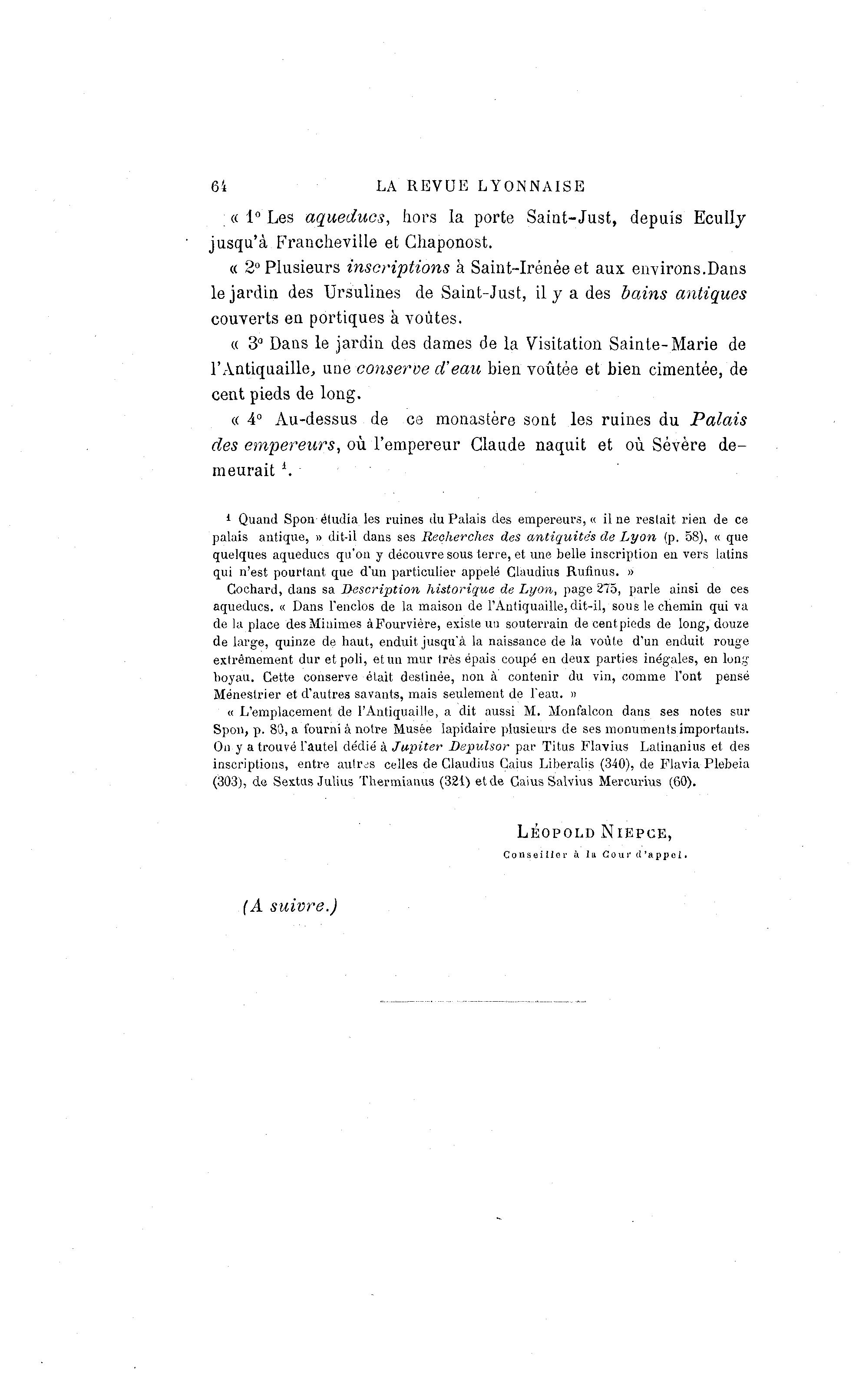 aqueducs. « Dans l'enclos de la maison de l'Antiquaille, dit-il, sous le chemin qui va