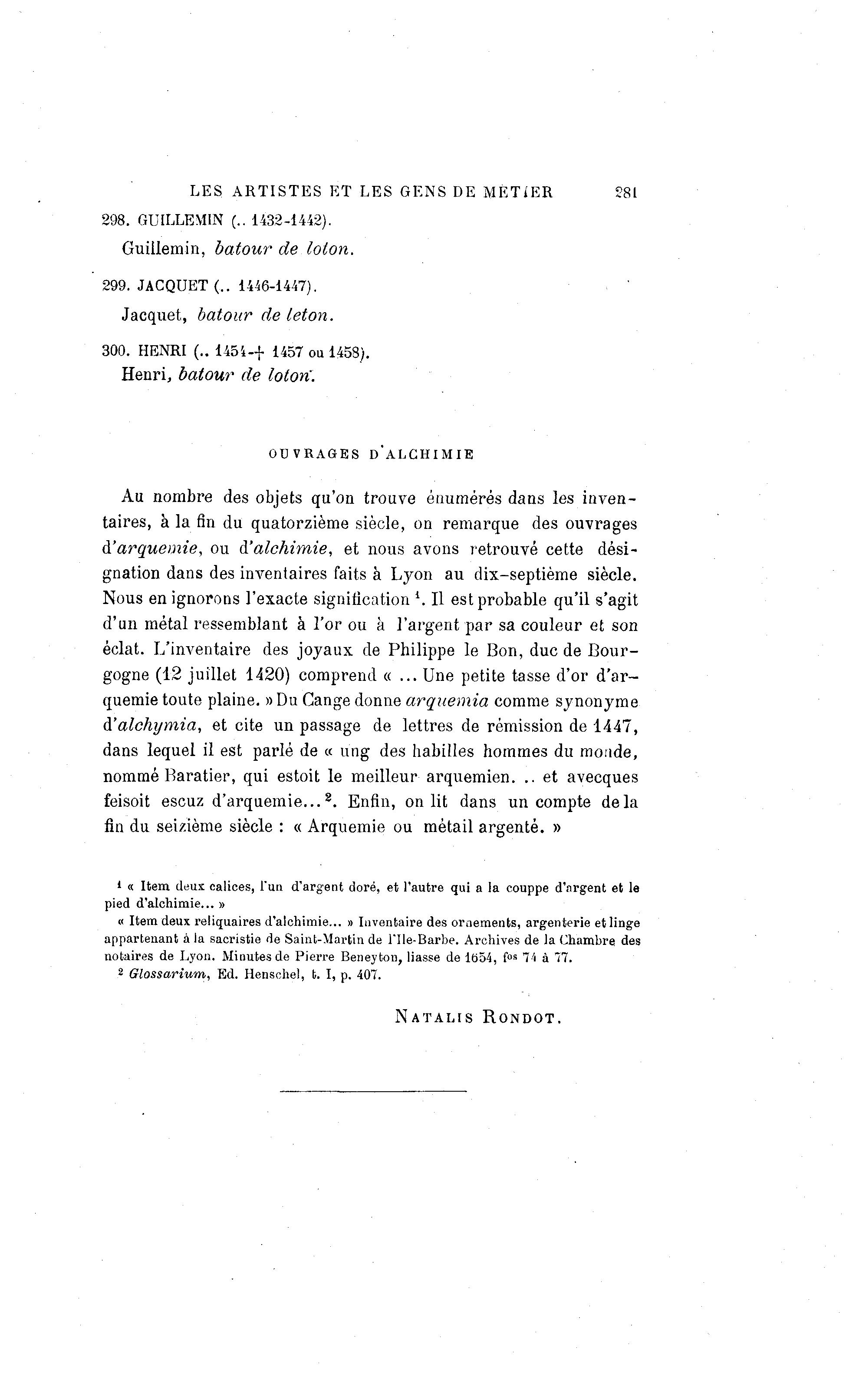 à'alchymia, et cite un passage de lettres de rémission de 1447,