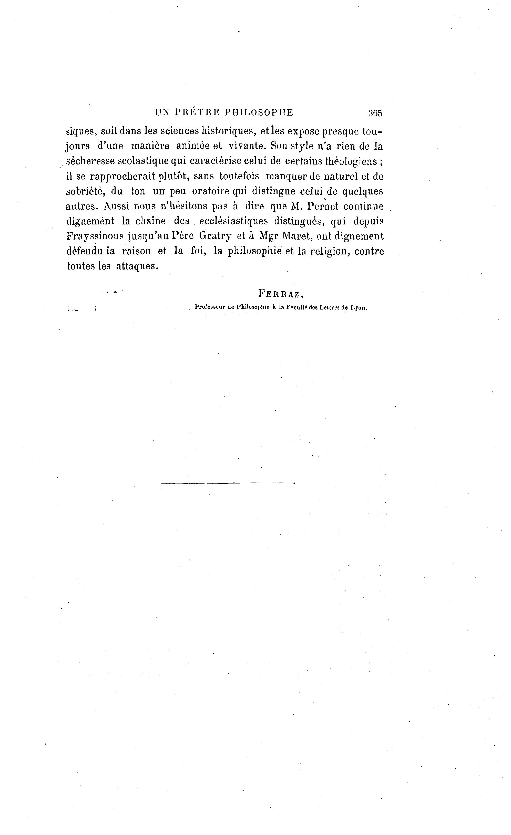 Frayssinous jusqu'au Père Gratry et à Mgr Maret, ont dignement