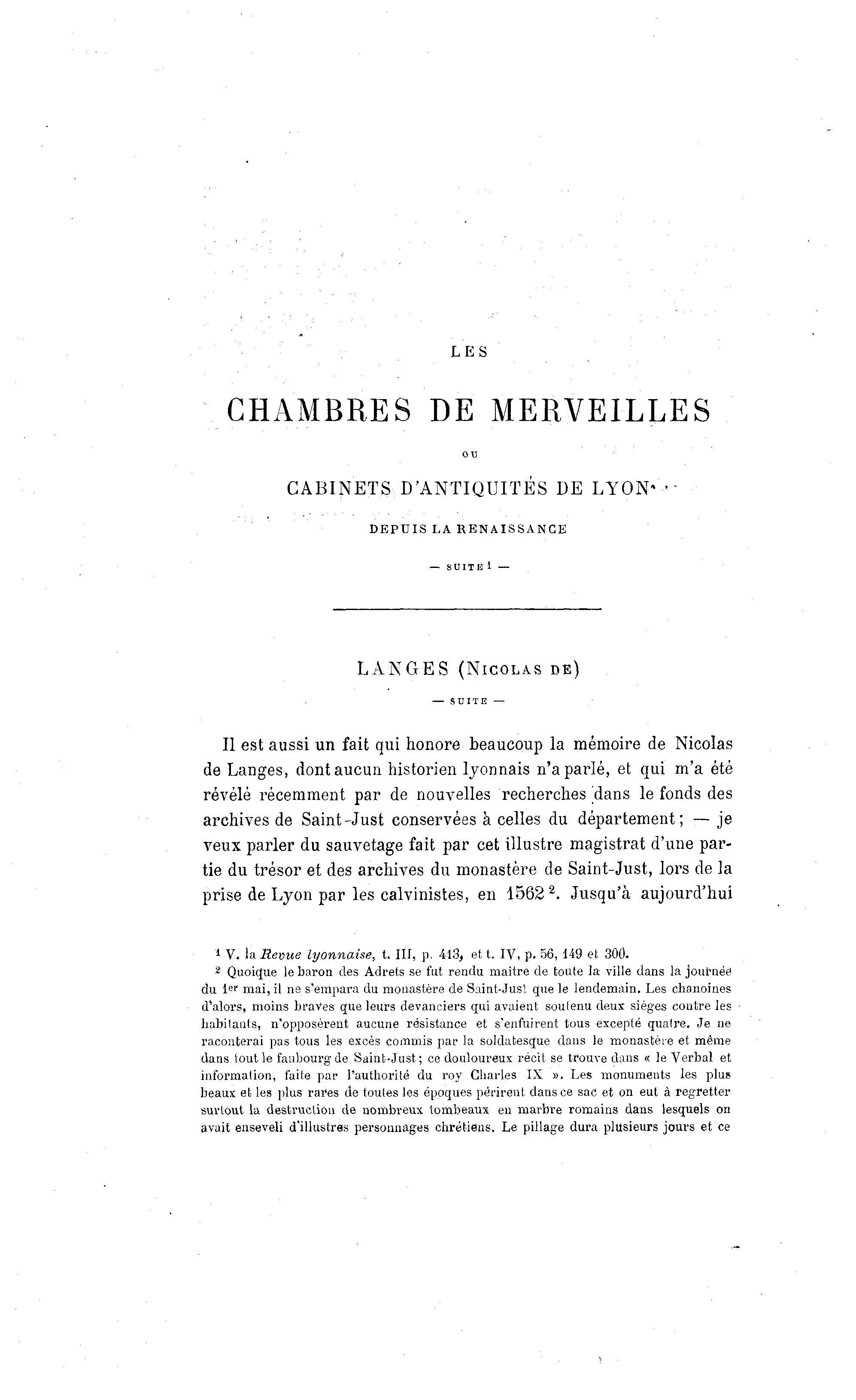 de Langes, dont aucun historien lyonnais n'a parlé, et qui m'a été