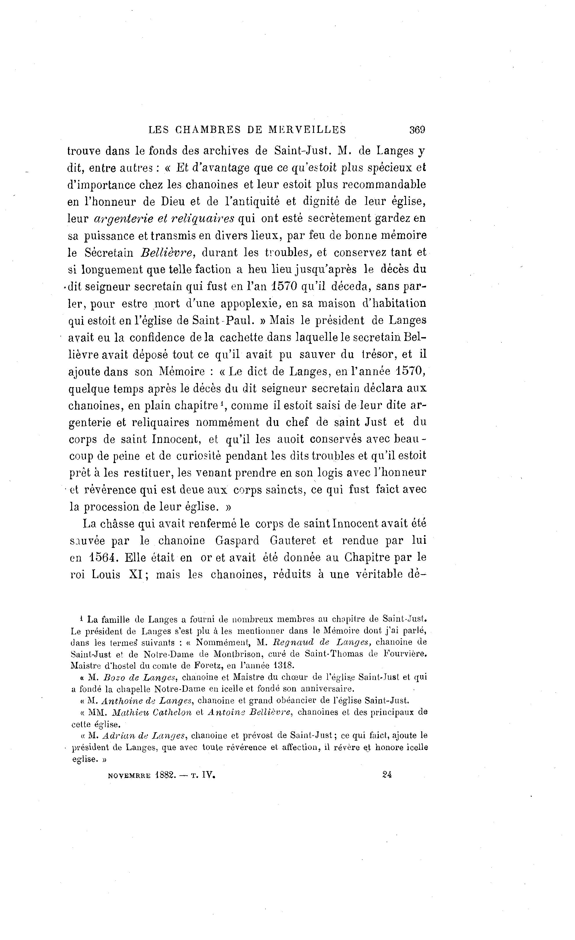 i La famille de Langes a fourni de nombreux membres au chapitre de Saint-Just.