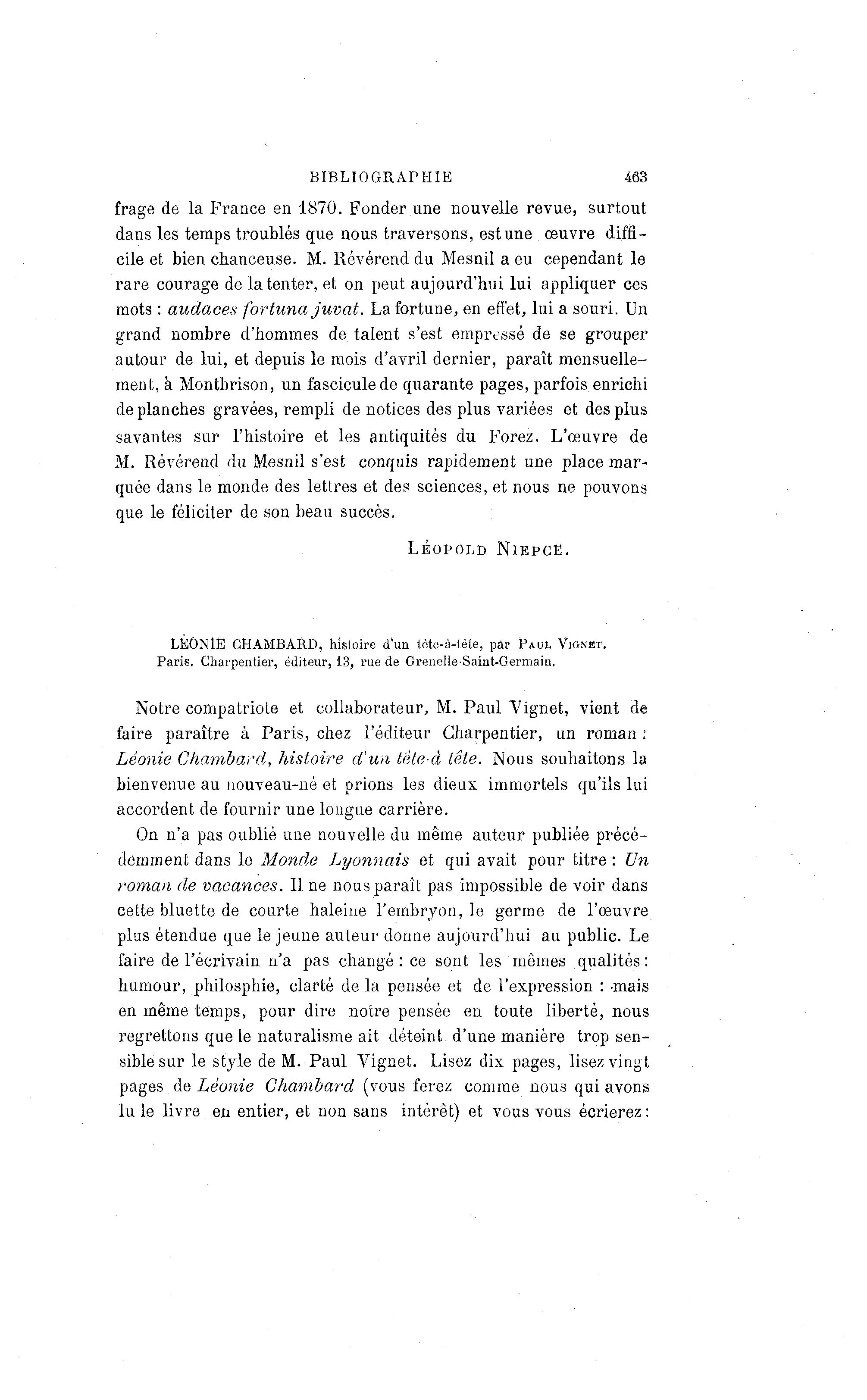LKONlË CHAMBARD, histoire d'un tète-à -tète, par PAUL VIGNET.