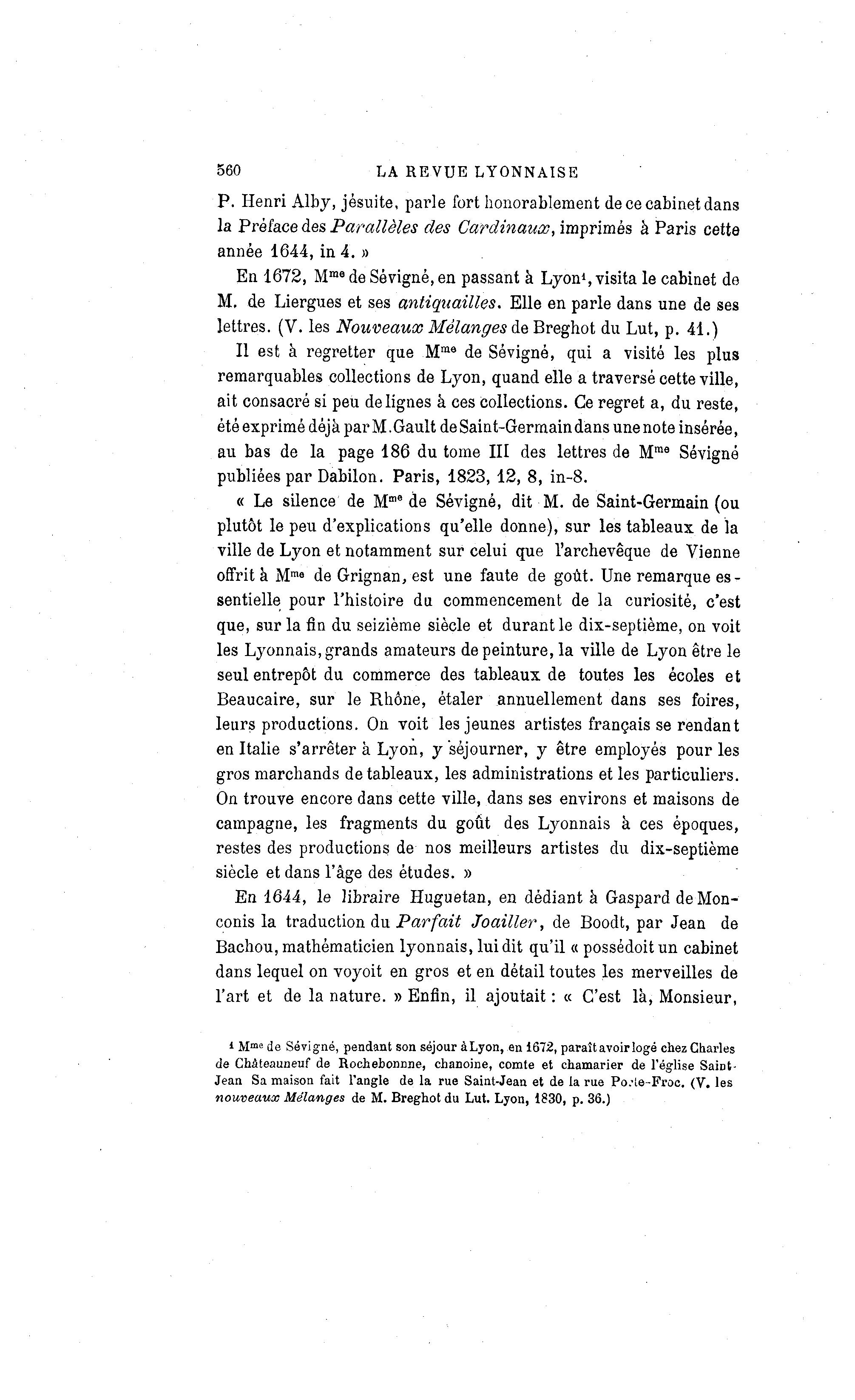 En 1672, Mme de Sévigné, en passant à Lyon1, visita le cabinet de