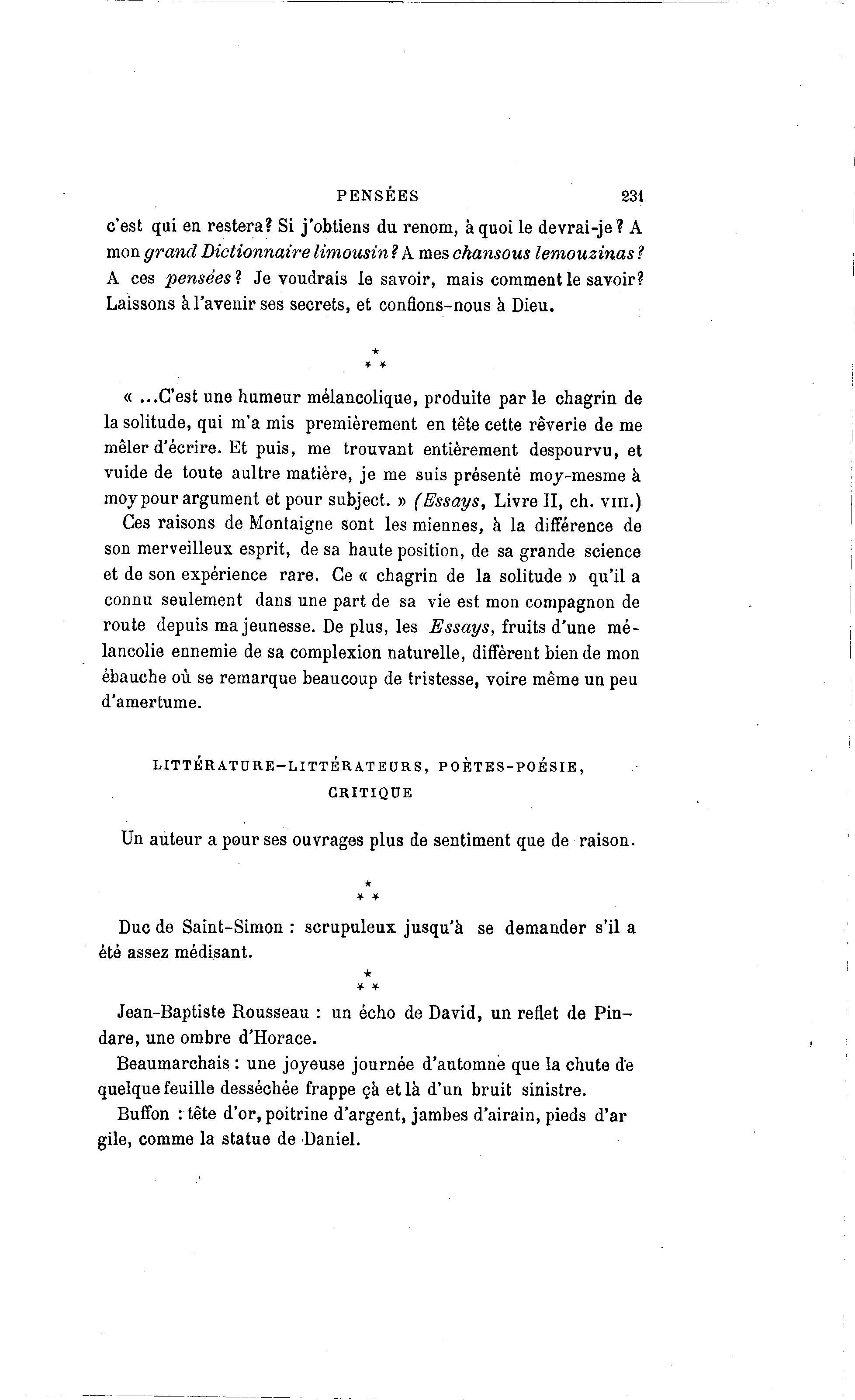 moy pour argument et pour subject. » (Essays, Livre II, ch. vin.)