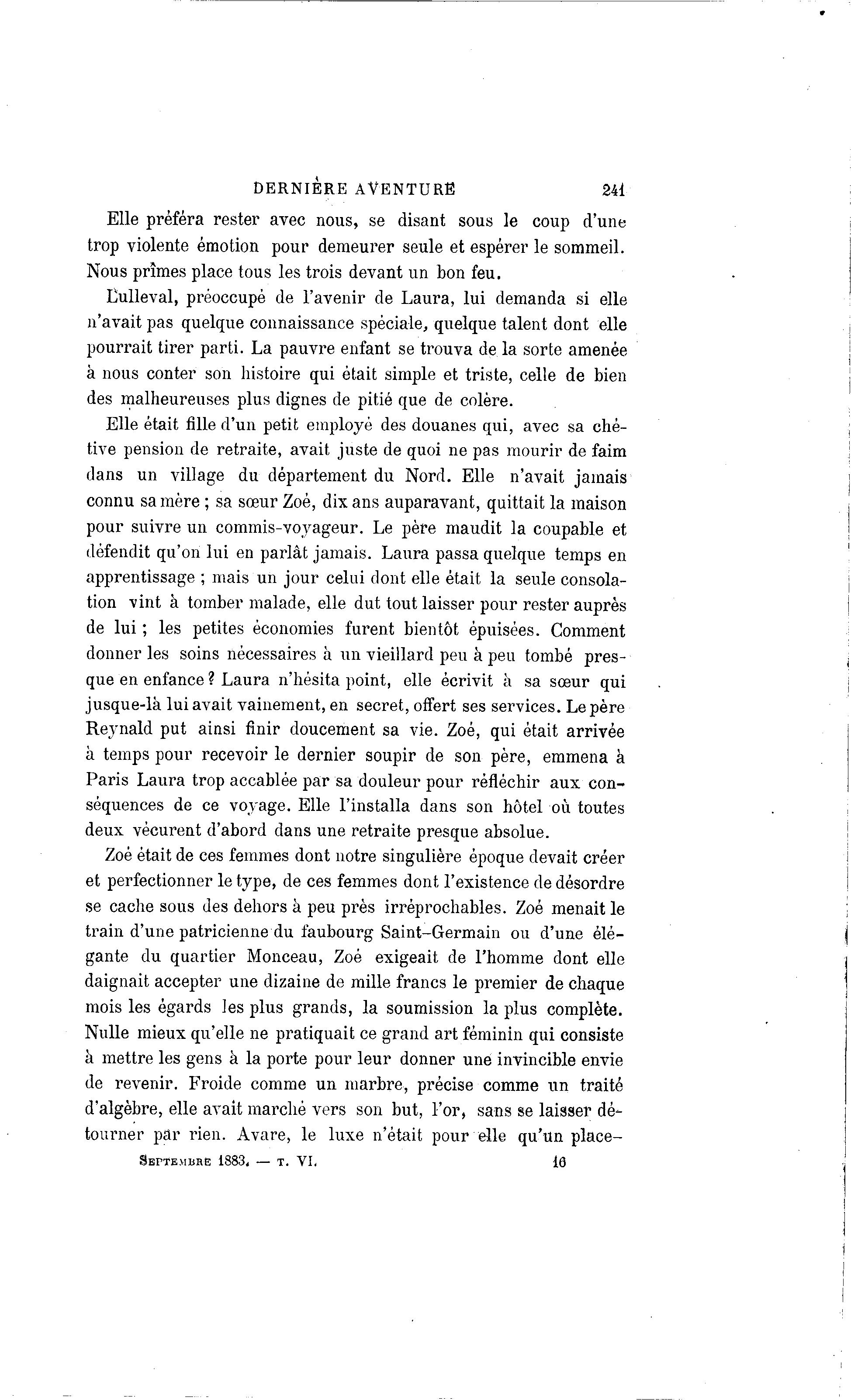 connu sa mère ; sa sœur Zoé, dix ans auparavant, quittait la maison