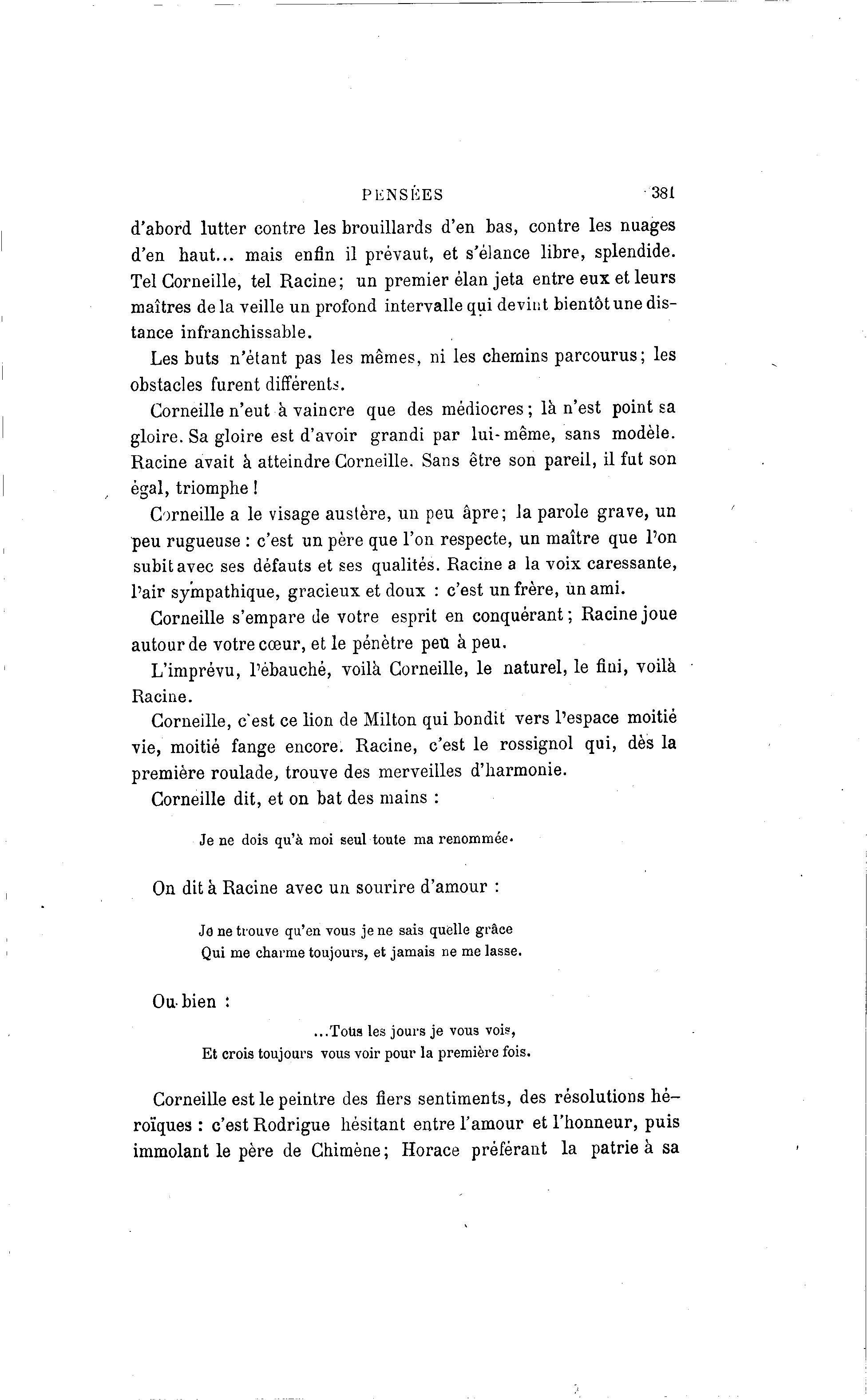 Tel Corneille, tel Racine; un premier élan jeta entre eux et leurs
