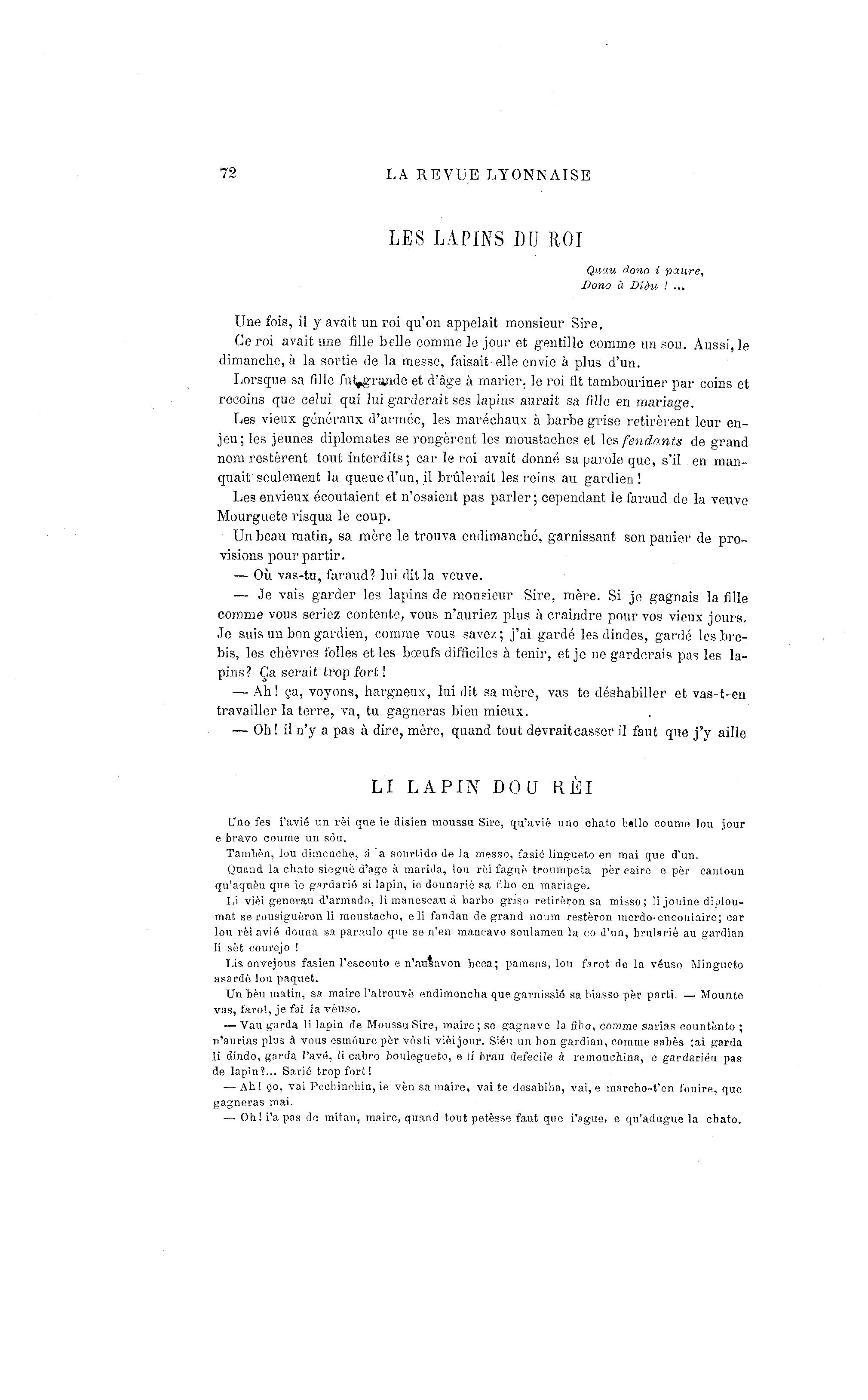 — Vau garda îi lapin de Moussu Sire, maire; se gagnave la fi ho, comme sarias eountènto ;