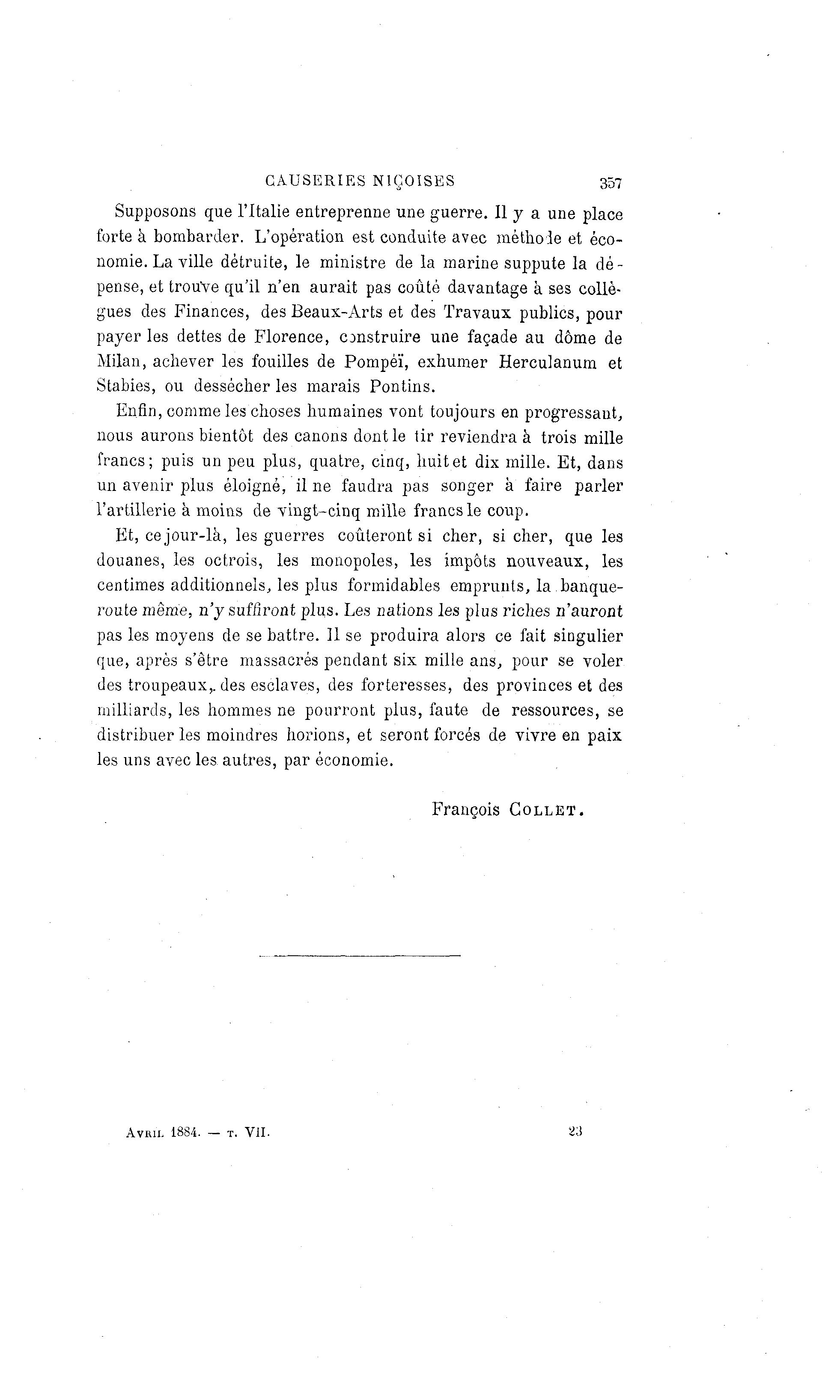 pense, et trouve qu'il n'en aurait pas coûté davantage à ses collè-