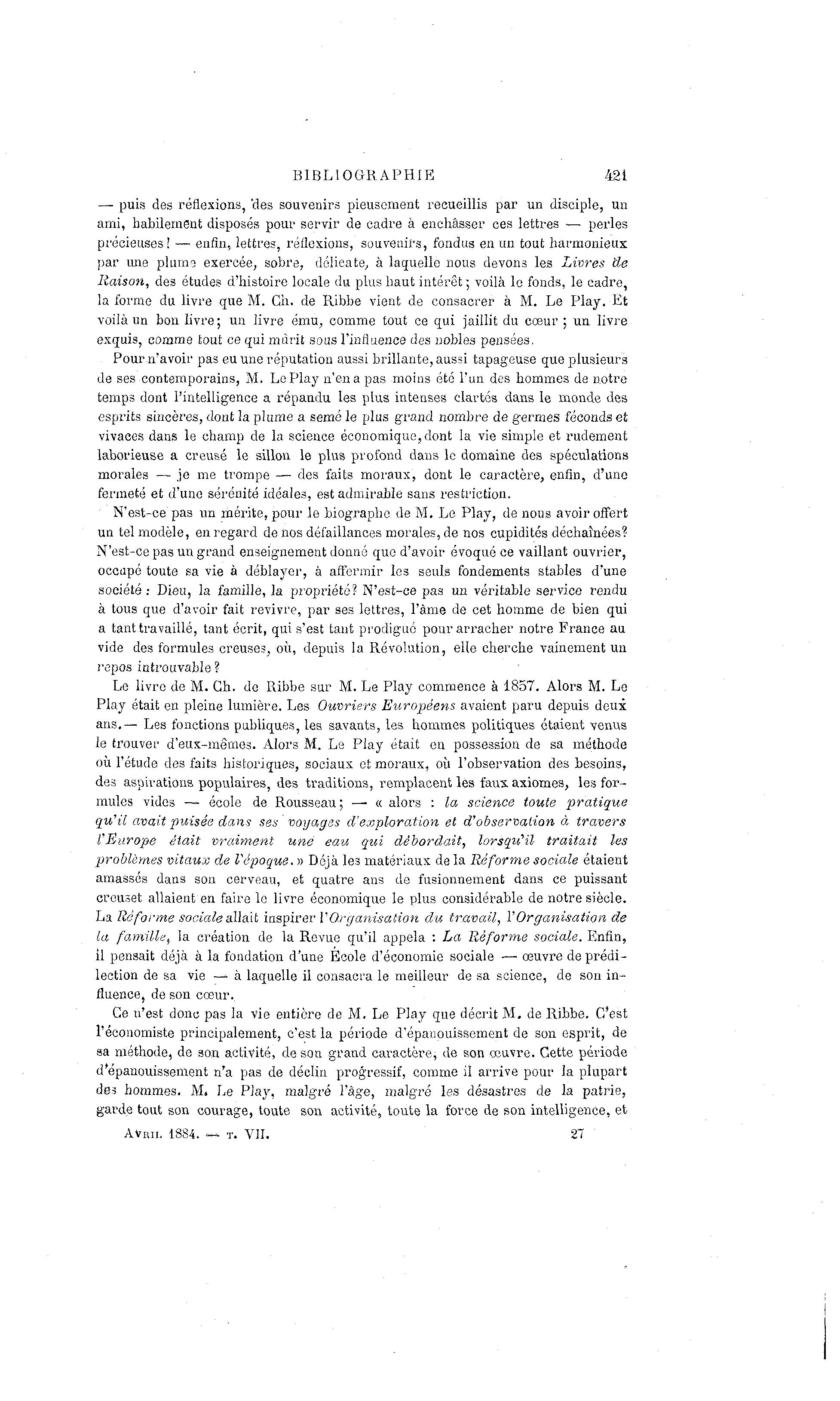 la forme du livre que M. Ch. de Ribbe vient de consacrer à M. Le Play. Et