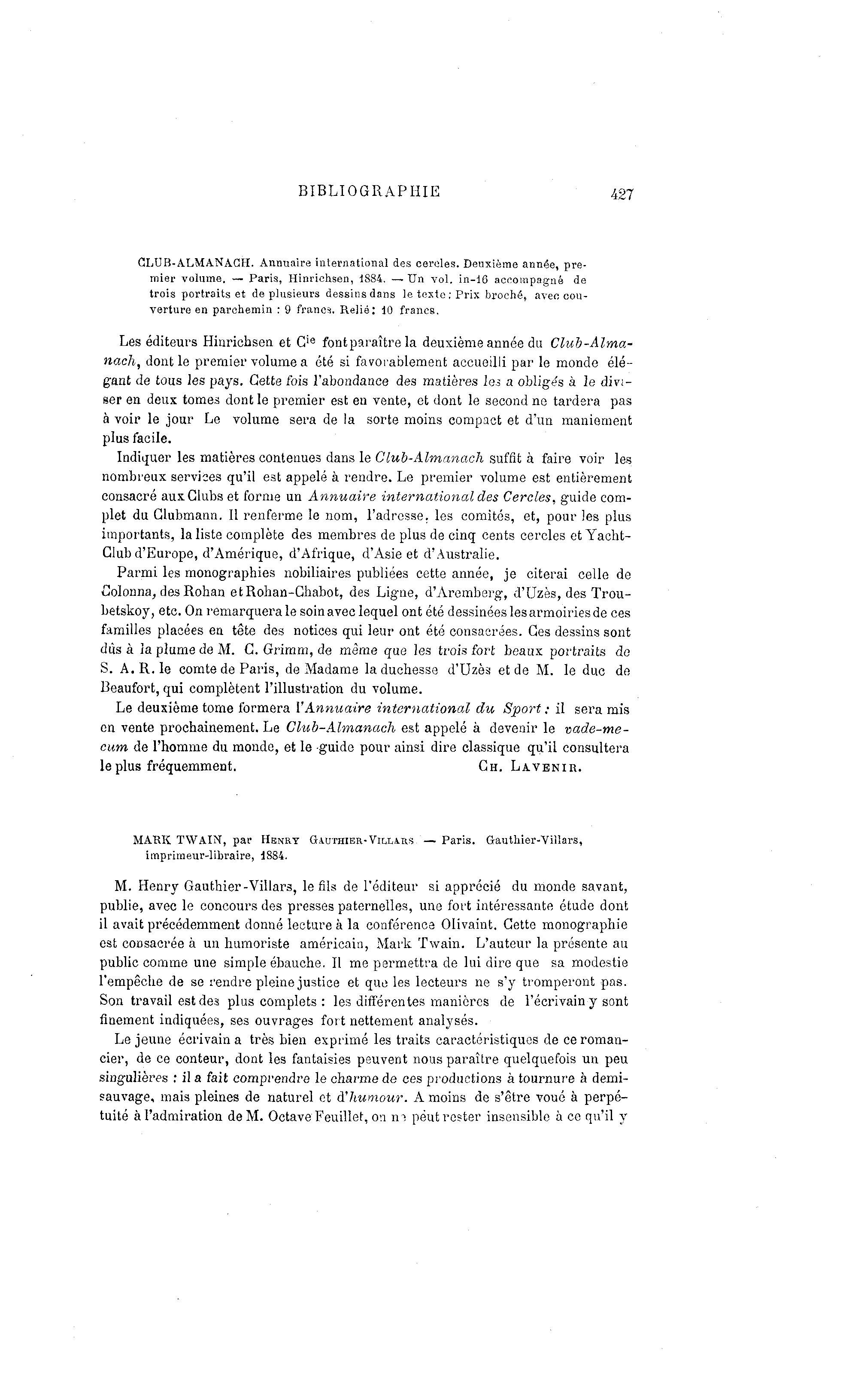 MARK TWAIN, par HENRY GAUTHIER-VILLIRS — Paris. Gauthier-Villars,