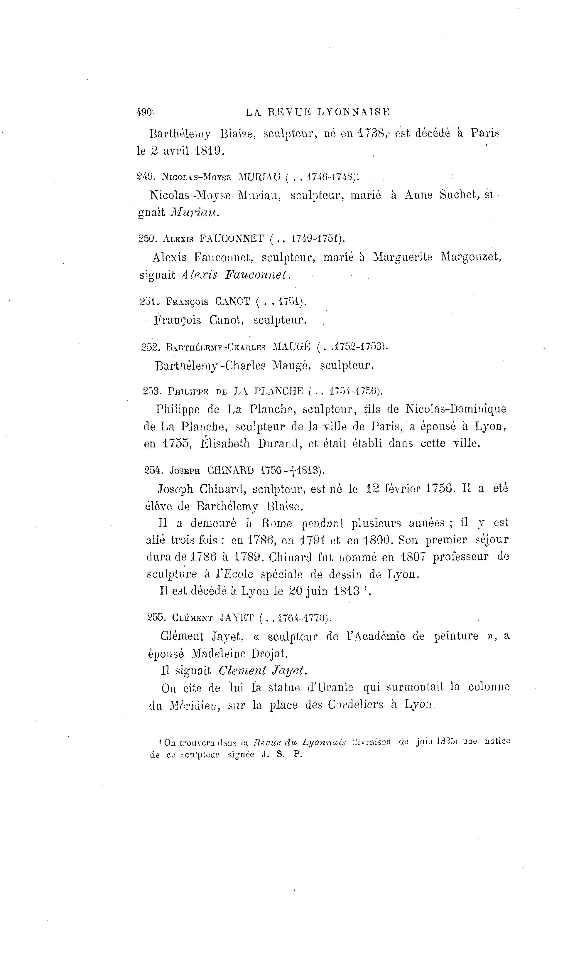 On trouvera dans la Revue du LyonnaU (livraison de juin 1835) une notice