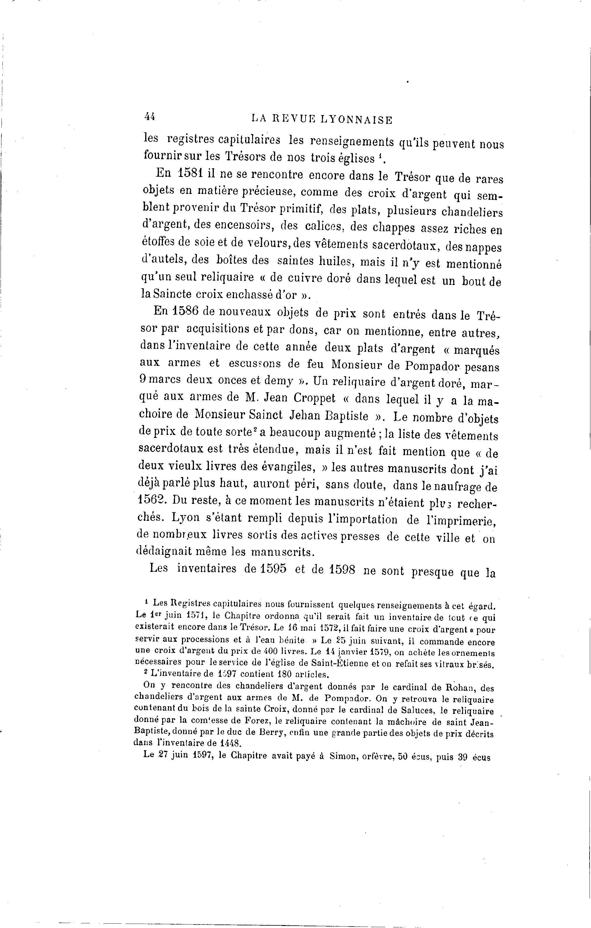 Le 1 e r juin 1571, le Chapitre ordonna qu'il serait fait un inventaire de tout re qui