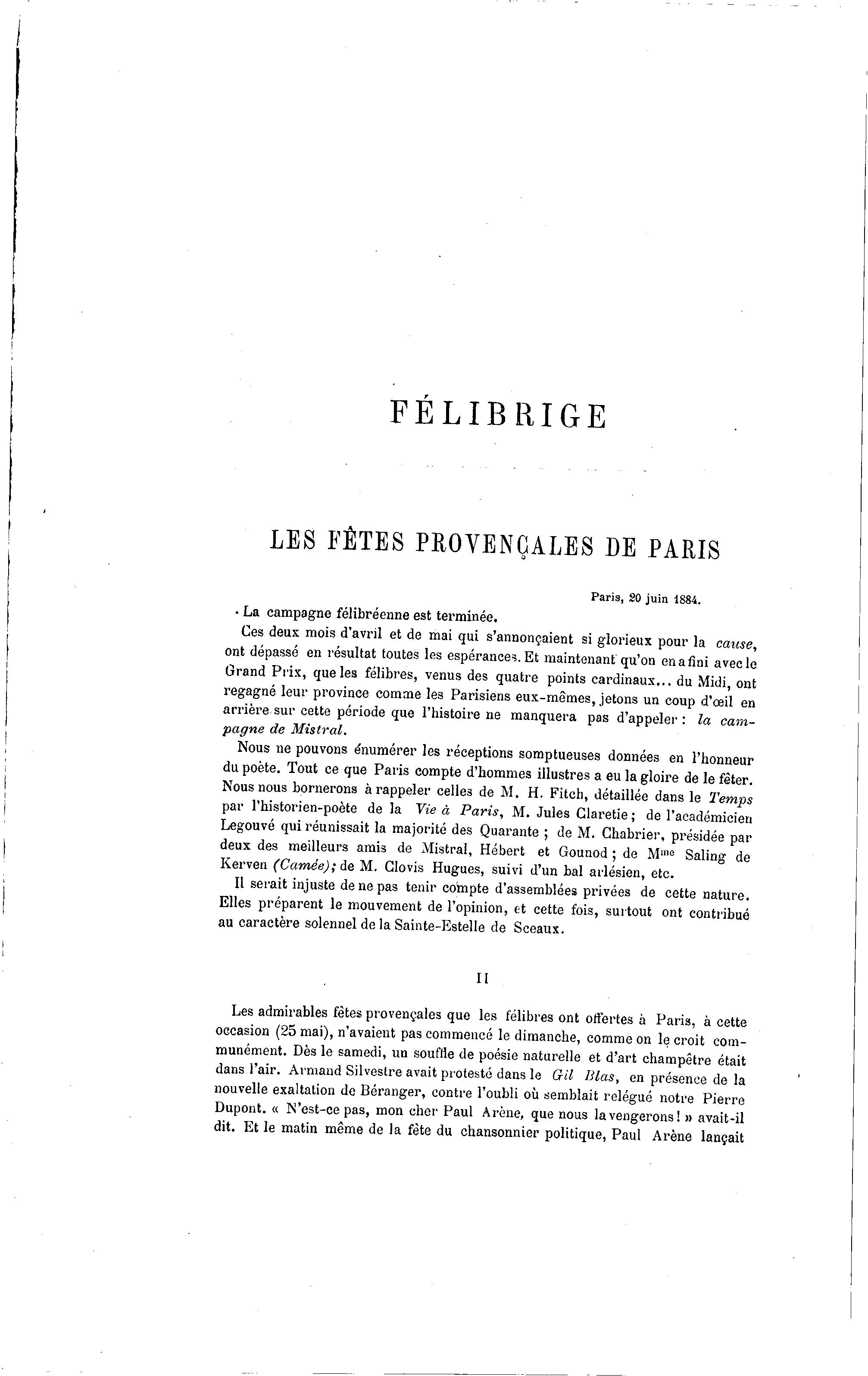 dit. Et le matin même de la fête du chansonnier politique, Paul Arène lançait