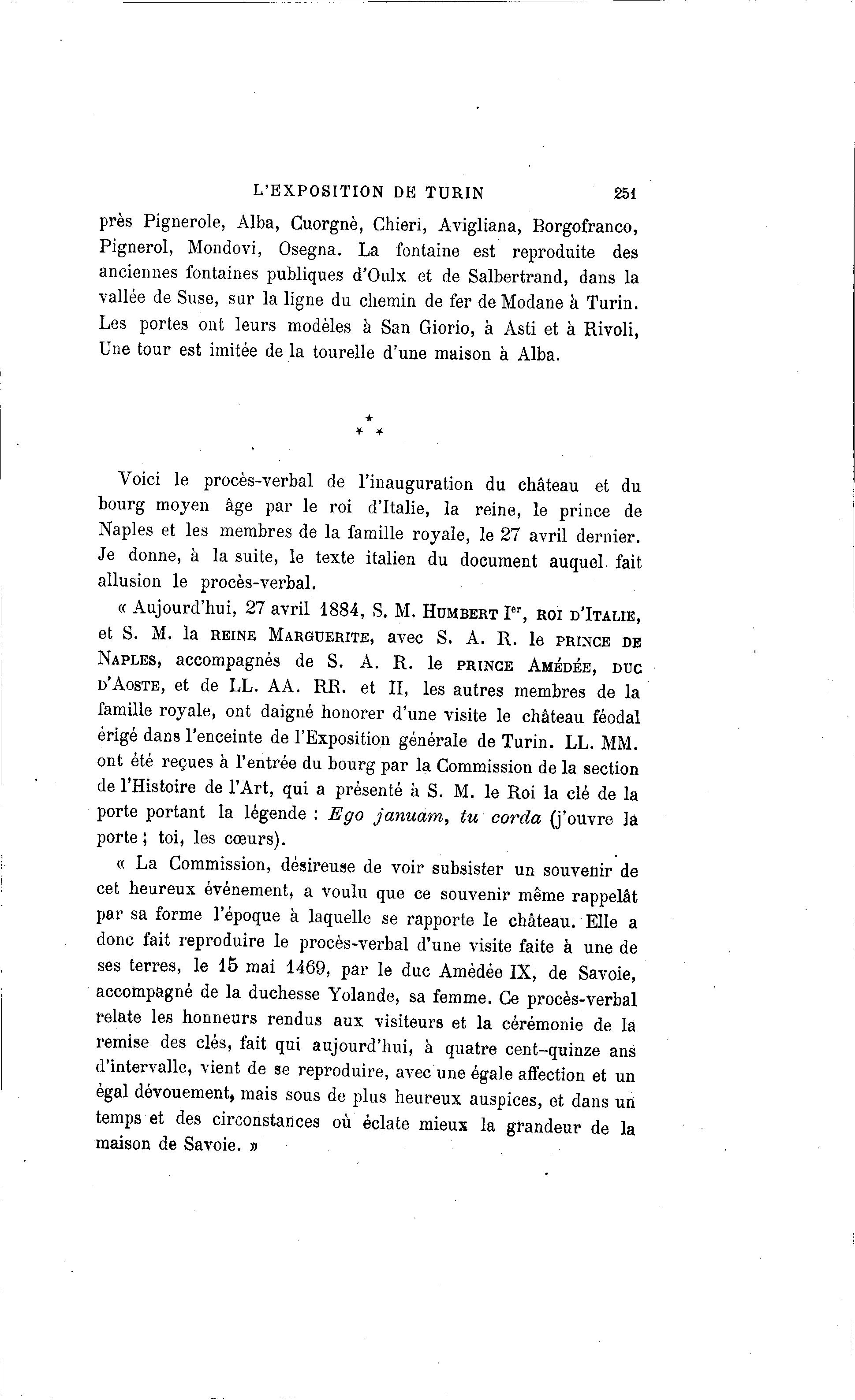 érigé dans l'enceinte de l'Exposition générale de Turin. LL. MM.