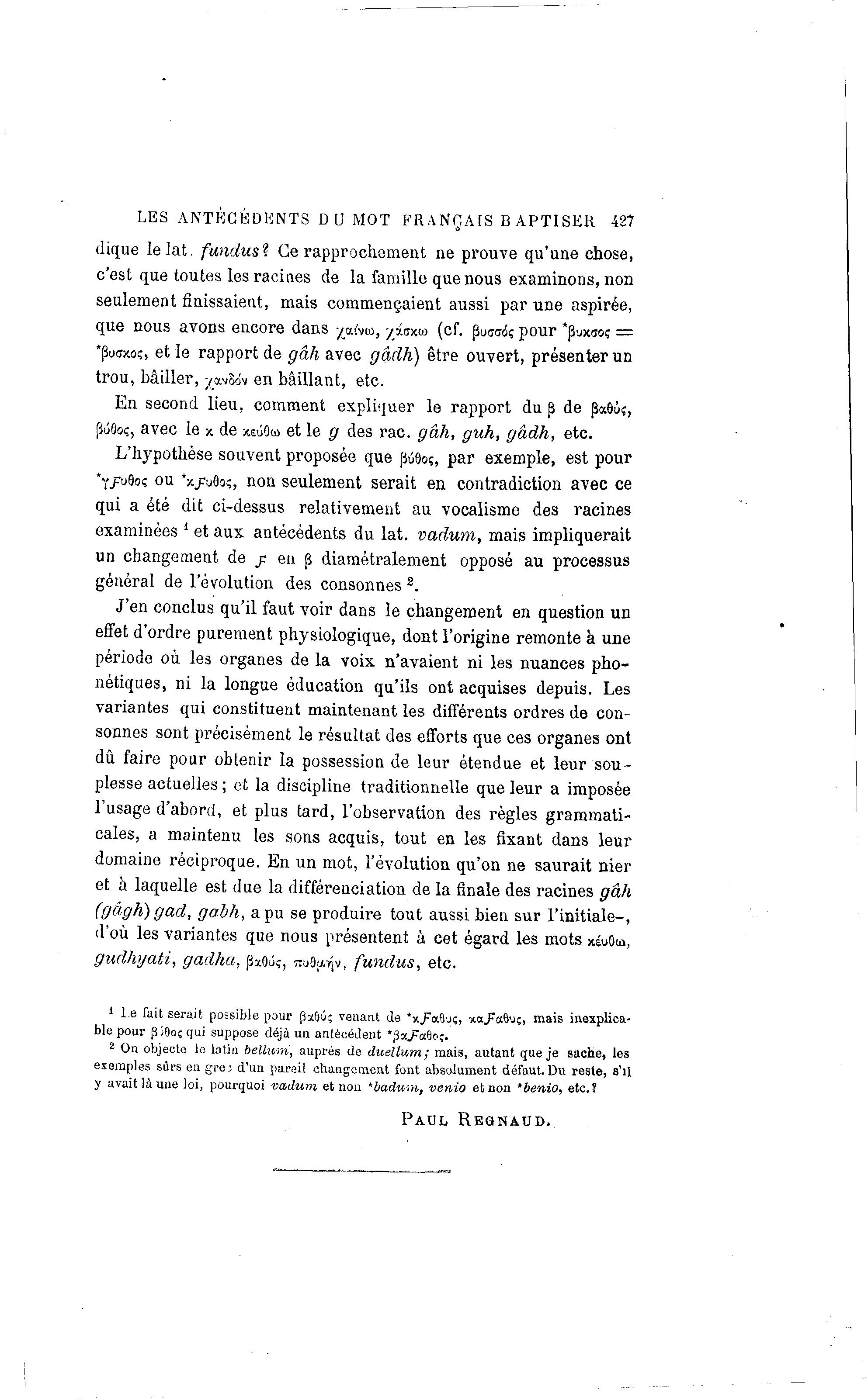 LES ANTÉCÉDENTS D U MOT FRANÇAIS B APTISER 427