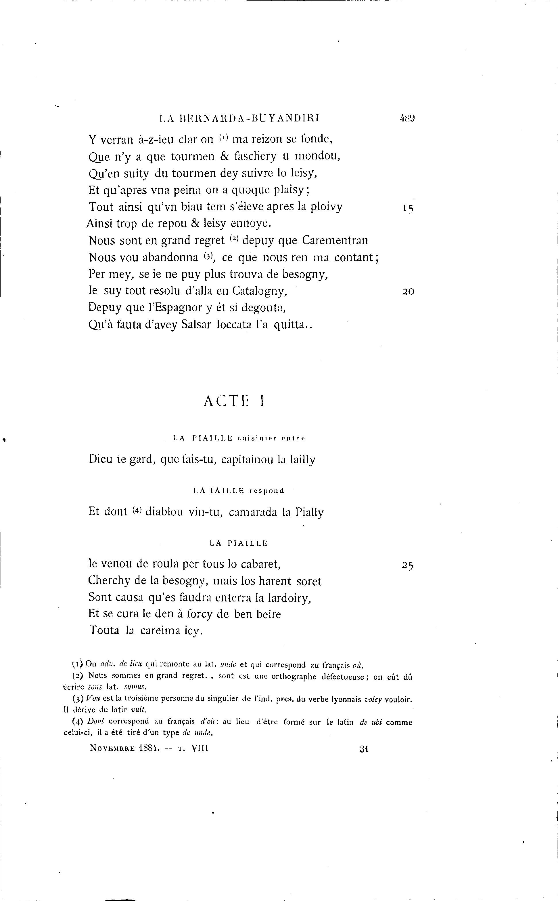 (3) Vou est la troisième personne du singulier de l'ind. pre». du verbe lyonnais voley vouloir.