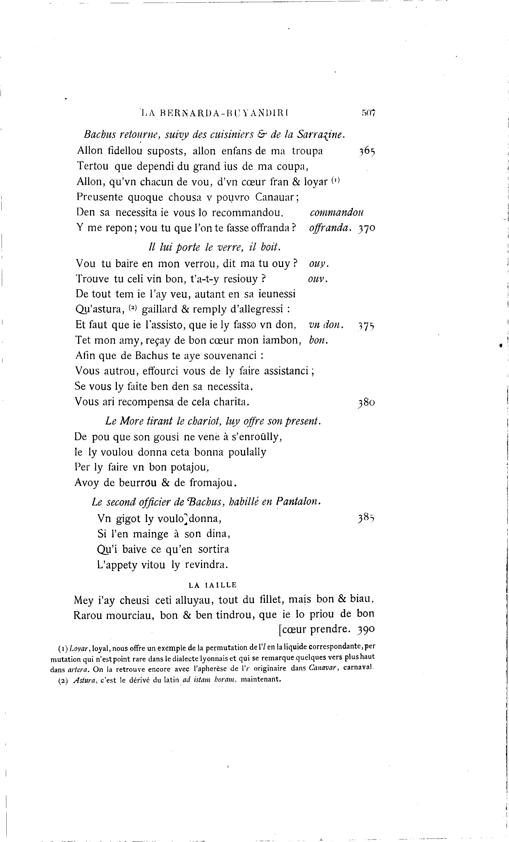 mutation qui n'est point rare dans le dialecte lyonnais et qui se remarque quelques vers plus haut