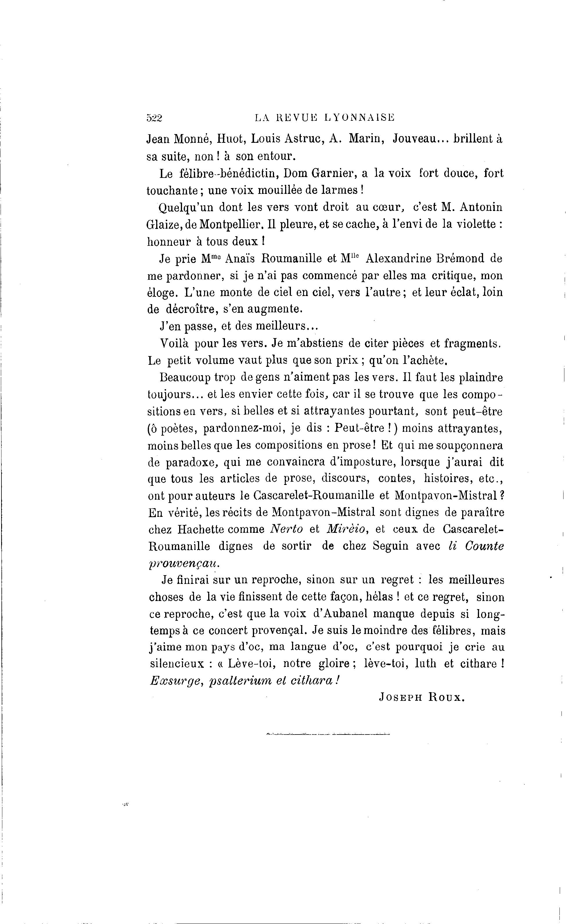 temps à ce concert provençal. Je suis le moindre des félibres, mais
