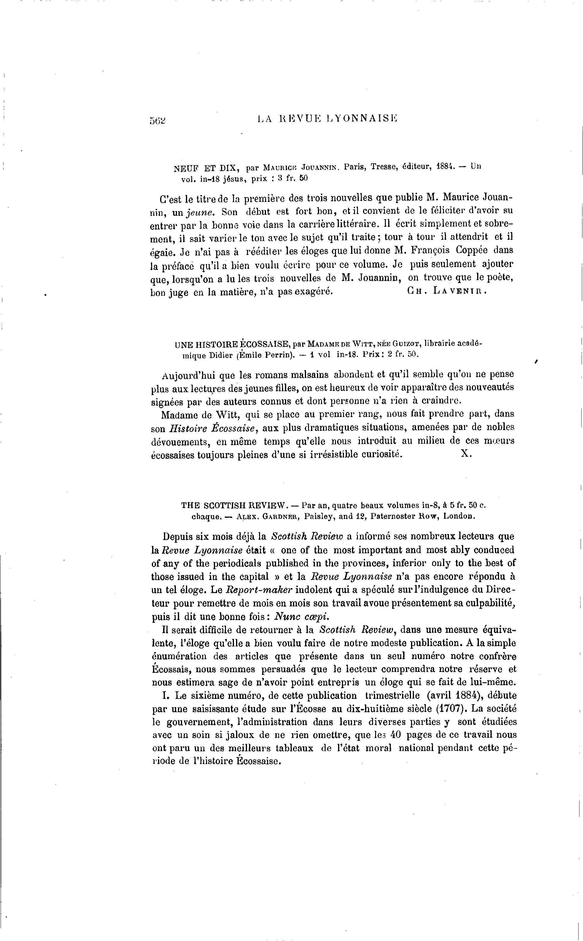 la Revue Lyonnaise était « one of the most important and most ably conduced