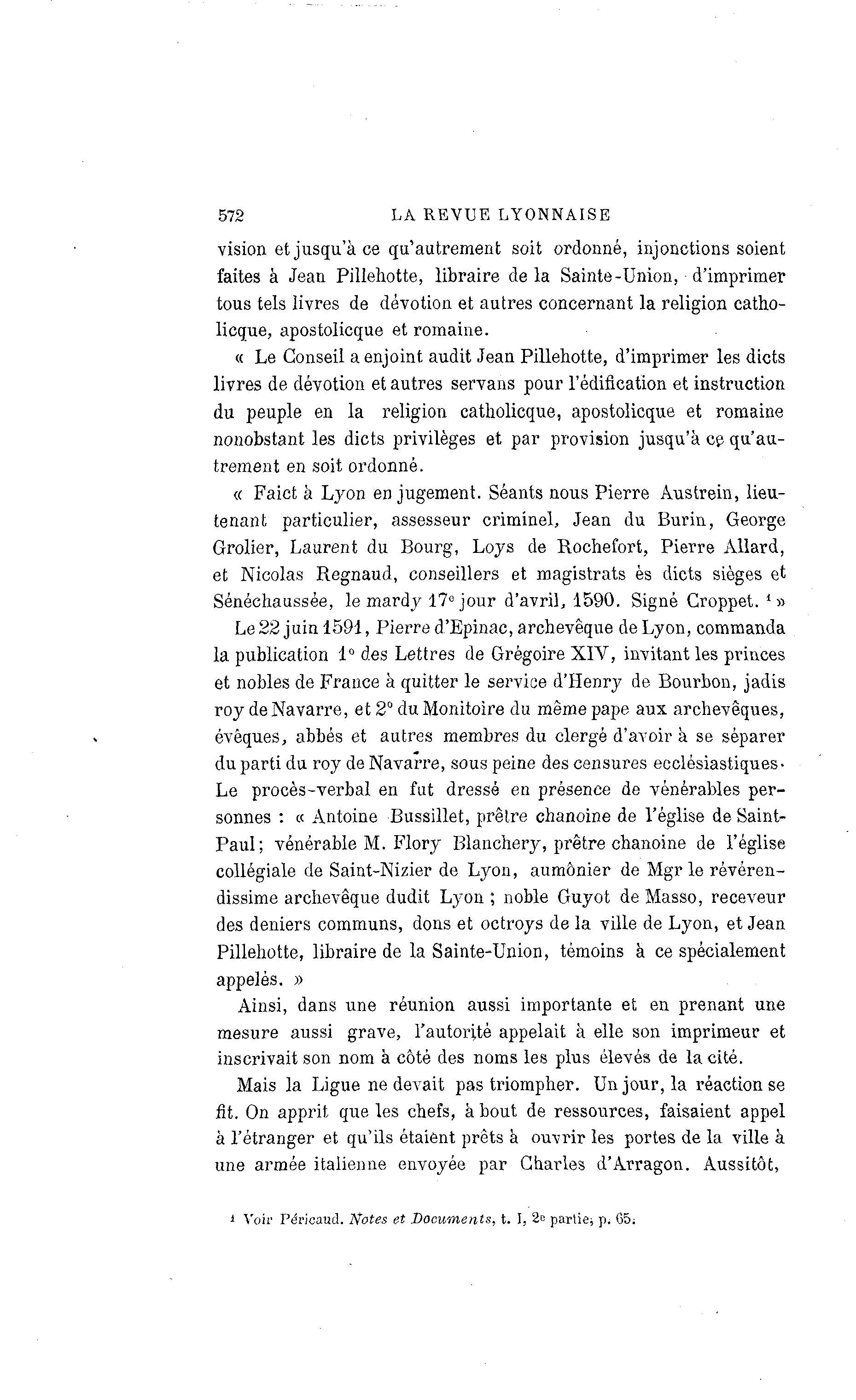 * Voir Péricaud. Notes et Documents, t. I, 2c partie; p. 05;