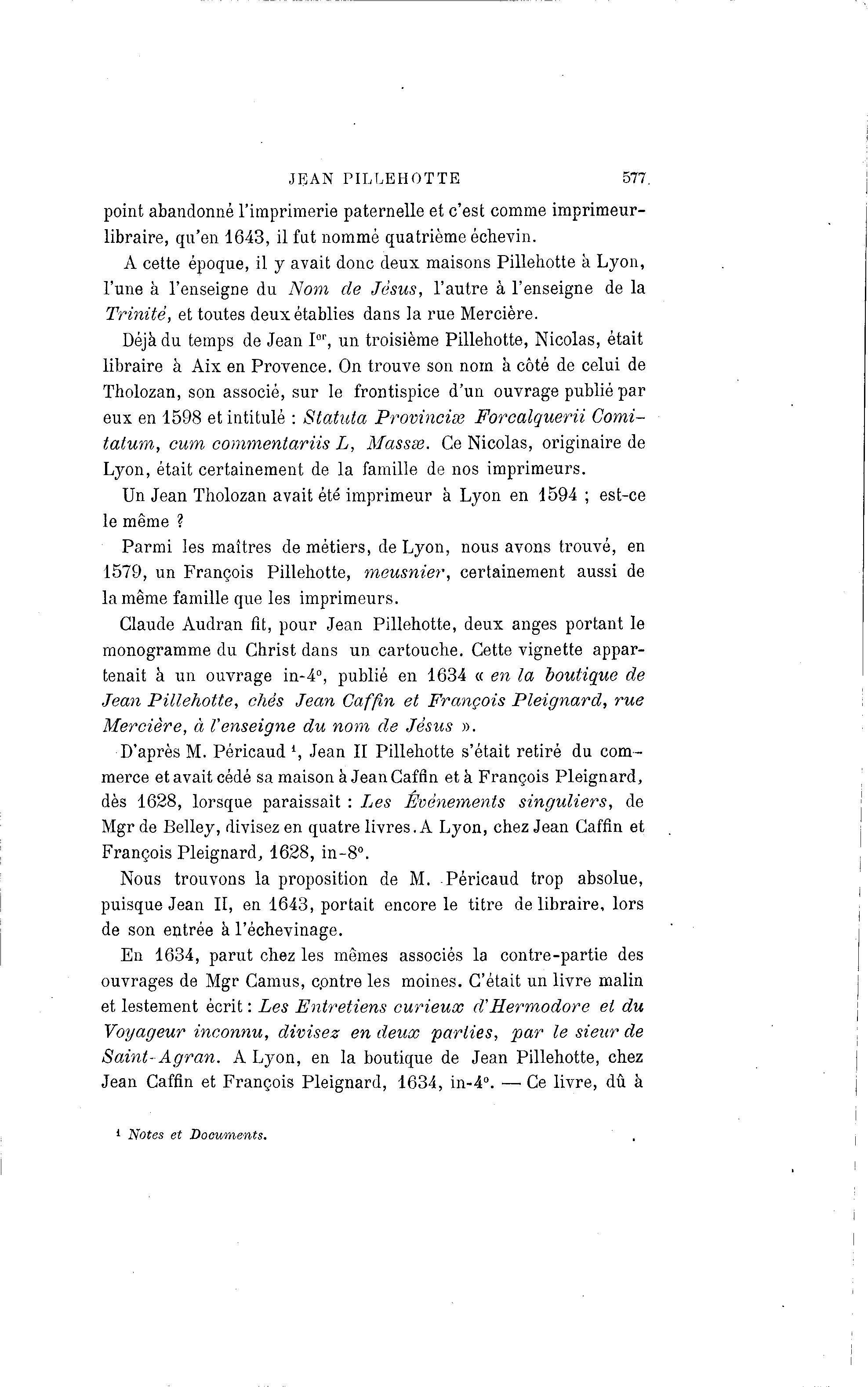 D'après M. Péricaud 4 , Jean II Pillehotte s'était retiré du com-