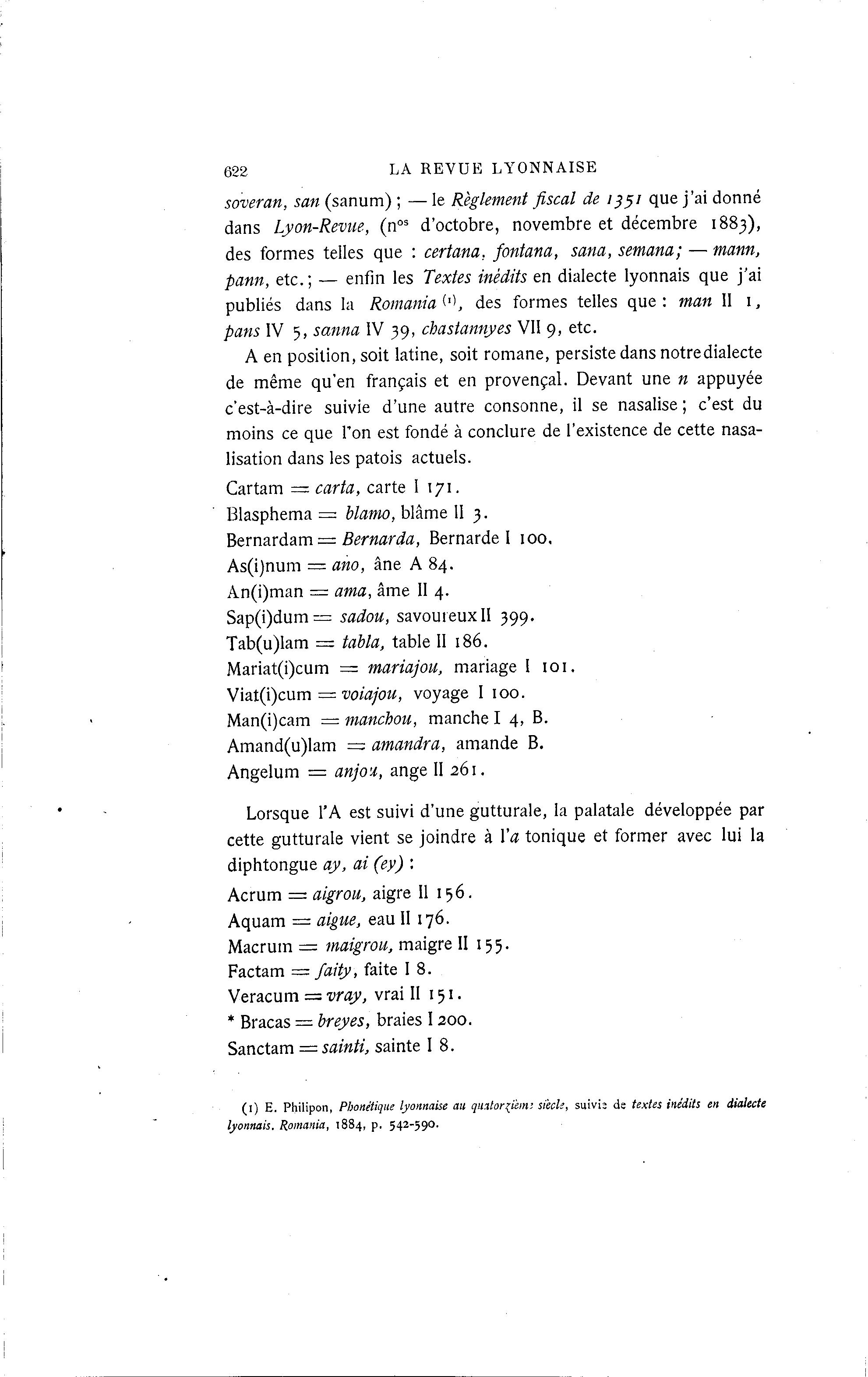 (1) E. Philipon, Phonétique lyonnaise au qmtor{iem: siècle, suivie de textes inédits en dialecte