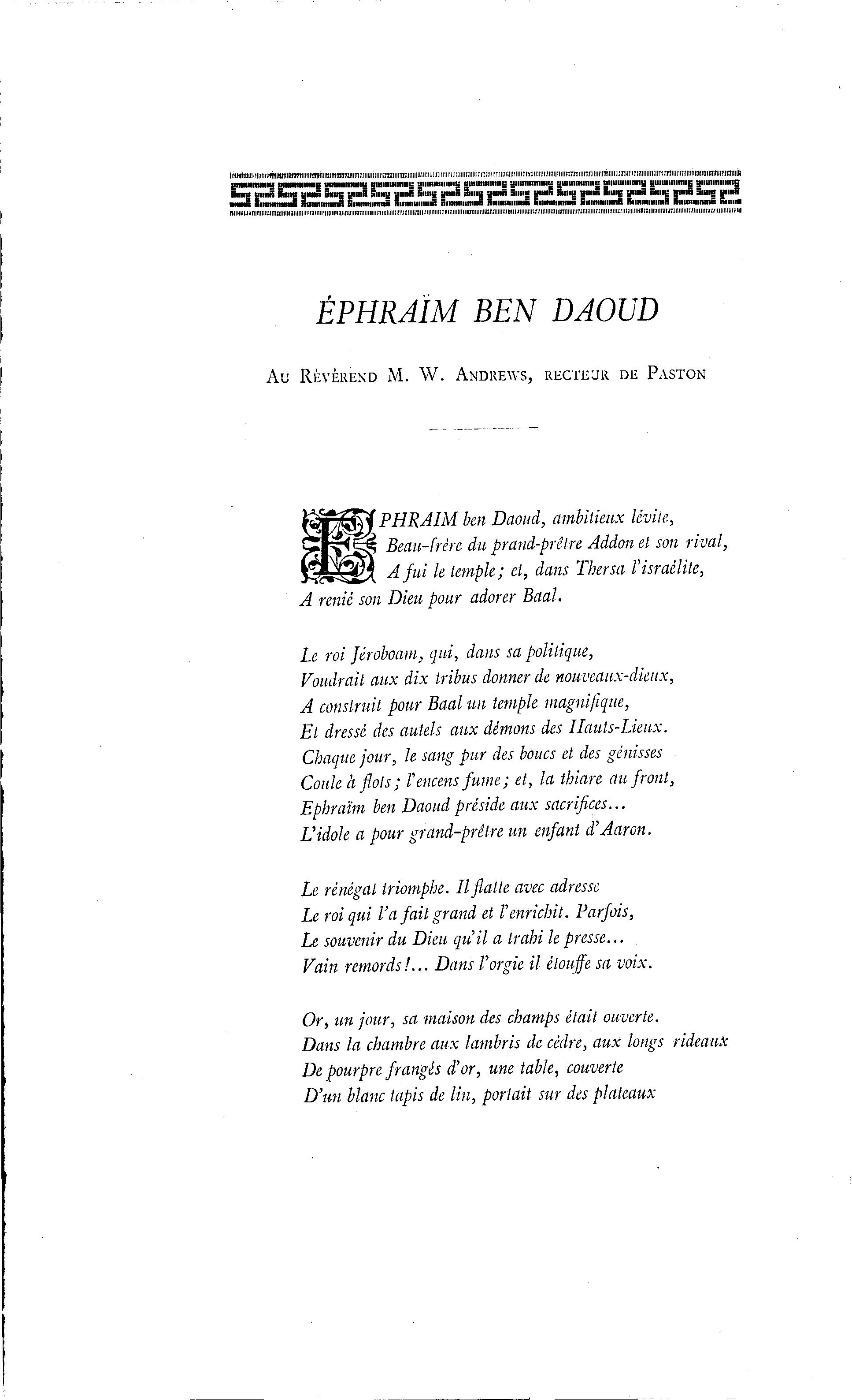 Au RÉVÉREND M. W. ANDREWS, RECTEUR DE PASTON