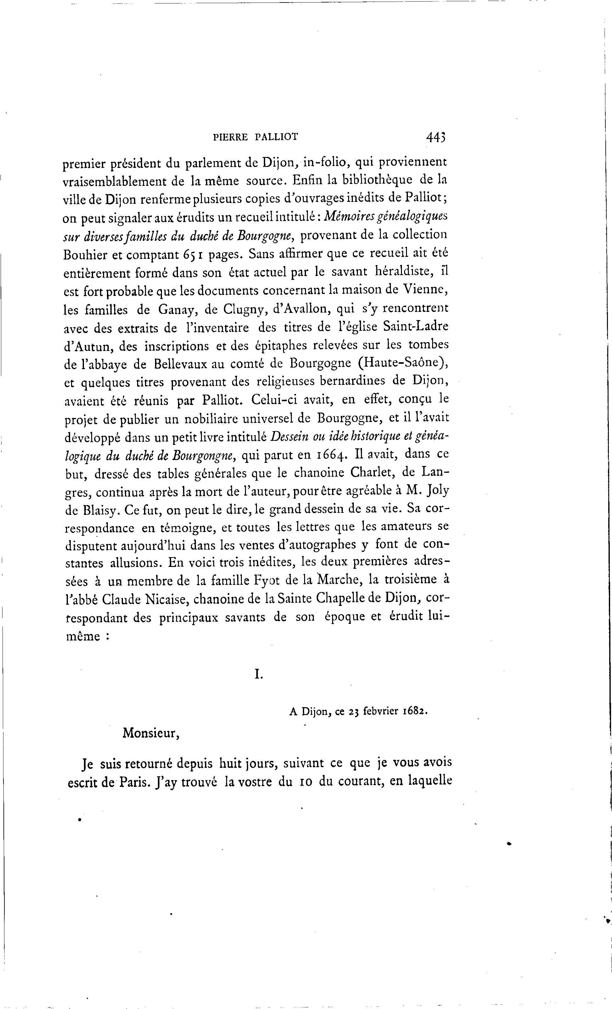 ville de Dijon renferme plusieurs copies d'ouvrages inédits de Palliot;