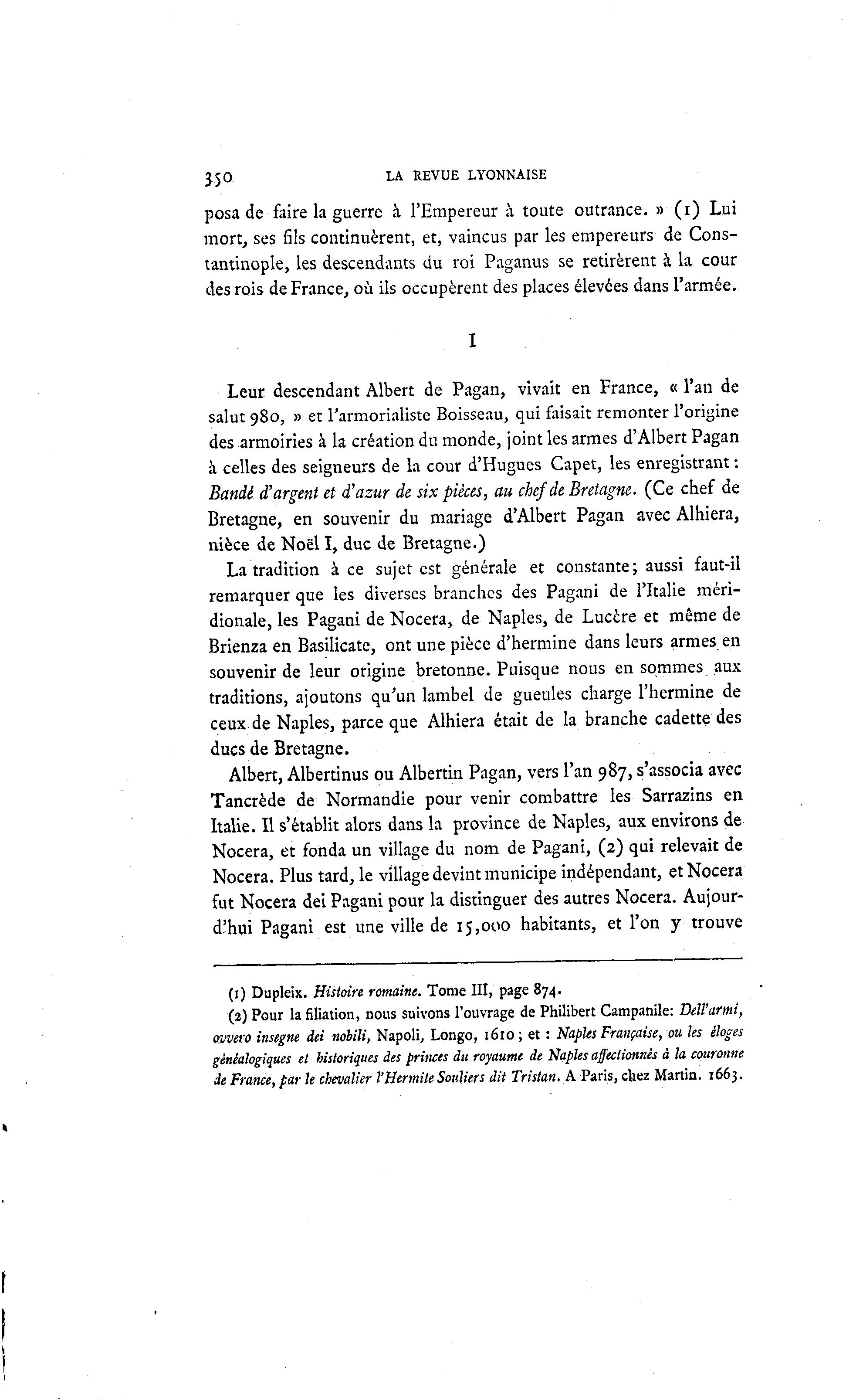 remarquer que les diverses branches des Pagani de l'Italie méri-