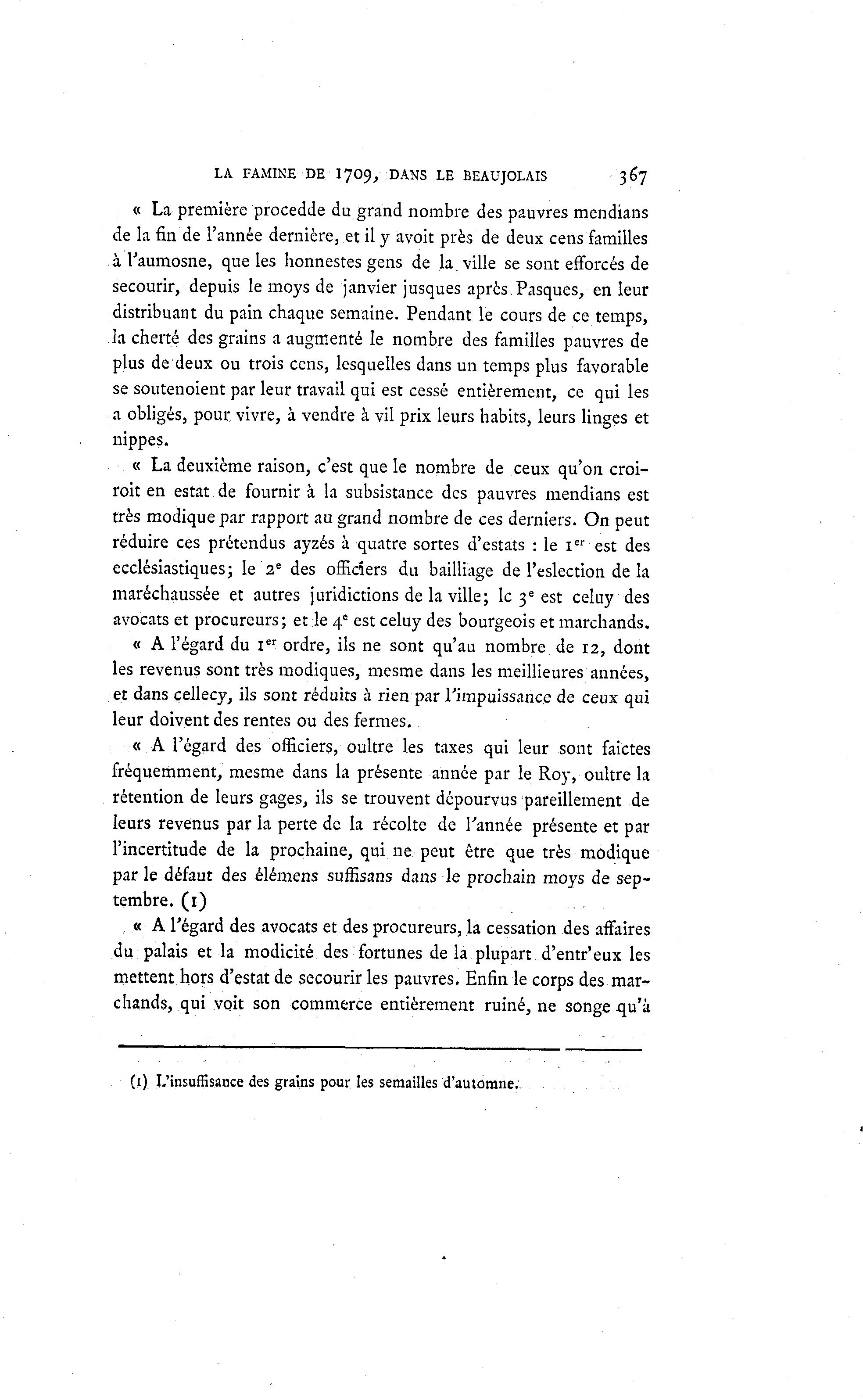 LA FAMINE DE I 7 0 9 / DANS LE BEAUJOLAIS 367
