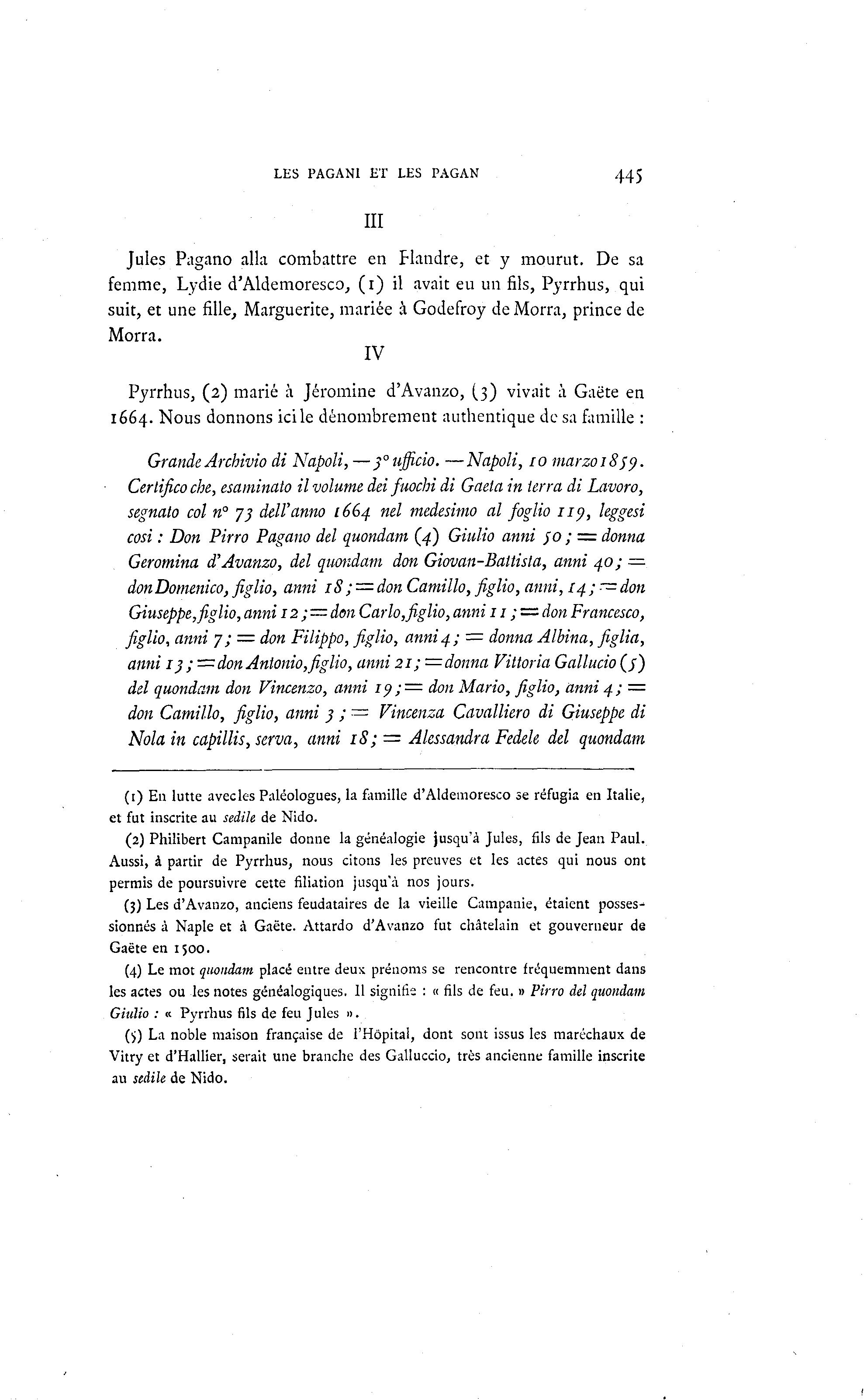 Pyrrhus, (2) marié à Jéromine d'Avanzo, (3) vivait à Gaëte en