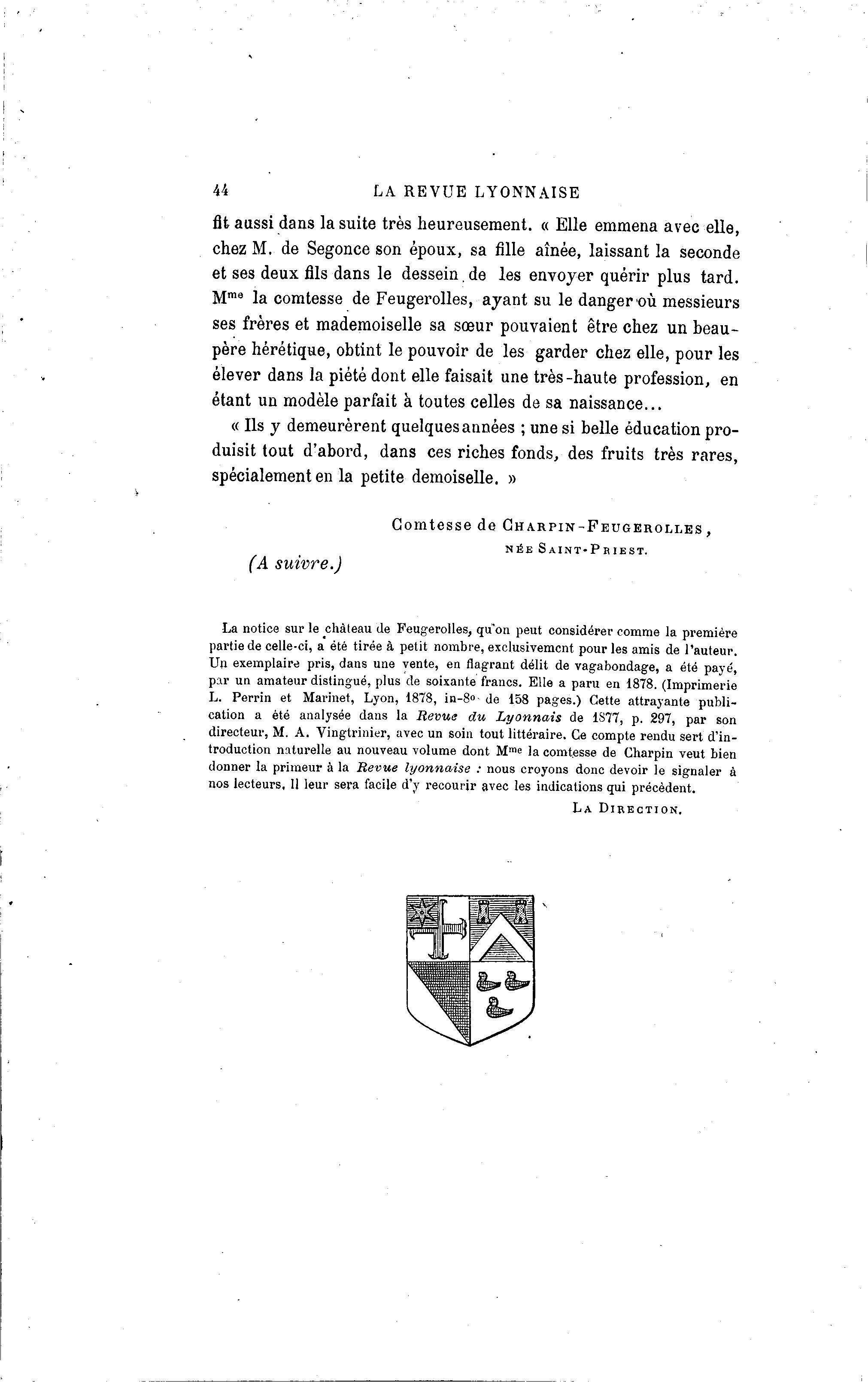 L. Perrin et Maiïnet, Lyon, 1878, in-8° de 158 pages.) Cette attrayante publi-